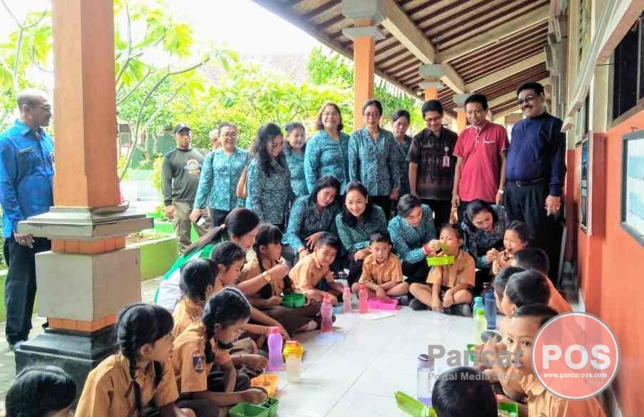Gianyar, PancarPOS | Mensukseskan program Pemerintah Kabupaten Gianyar dalam mewujudkan Budaya “Gemar Sarapan” bagi siswa, Tim Penggerak PKK Kabupaten Gianyar bersama Dinas Pendidikan serta Dinas Pemberdayaan Perempuan dan Perlindungan Anak, Pengendalian Penduduk dan Keluarga berencana (P3AP2KB) Kabupaten Gianyar mendatangi SD Negeri 3 Sukawati, Jumat (31/1/2020) pagi. Kunjungan ini sekaligus untuk memastikan program yang sudah berjalan setahun di sekolah tersebut mendapatkan dukungan penuh dari para orang tua siswa dan guru.