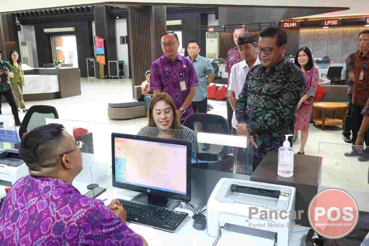 Denpasar, PancarPOS | Sekretaris Daerah Kota Denpasar, Ida Bagus Alit Wiradana, meninjau pelayanan administrasi di Mal Pelayanan Publik (MPP) Gedung Sewaka Dharma, Lumintang, Rabu (2/4/2025), yang tetap beroperasi kendati dalam masa Cuti Bersama dan Libur Hari Raya Idul Fitri 1446 Hijriah Tahun 2025. MPP Sewakadarma sendiri beroperasi setengah hari, yakni dari pukul 08.00 – 12.00 Wita, pada tanggal 2 dan 3 April 2025.