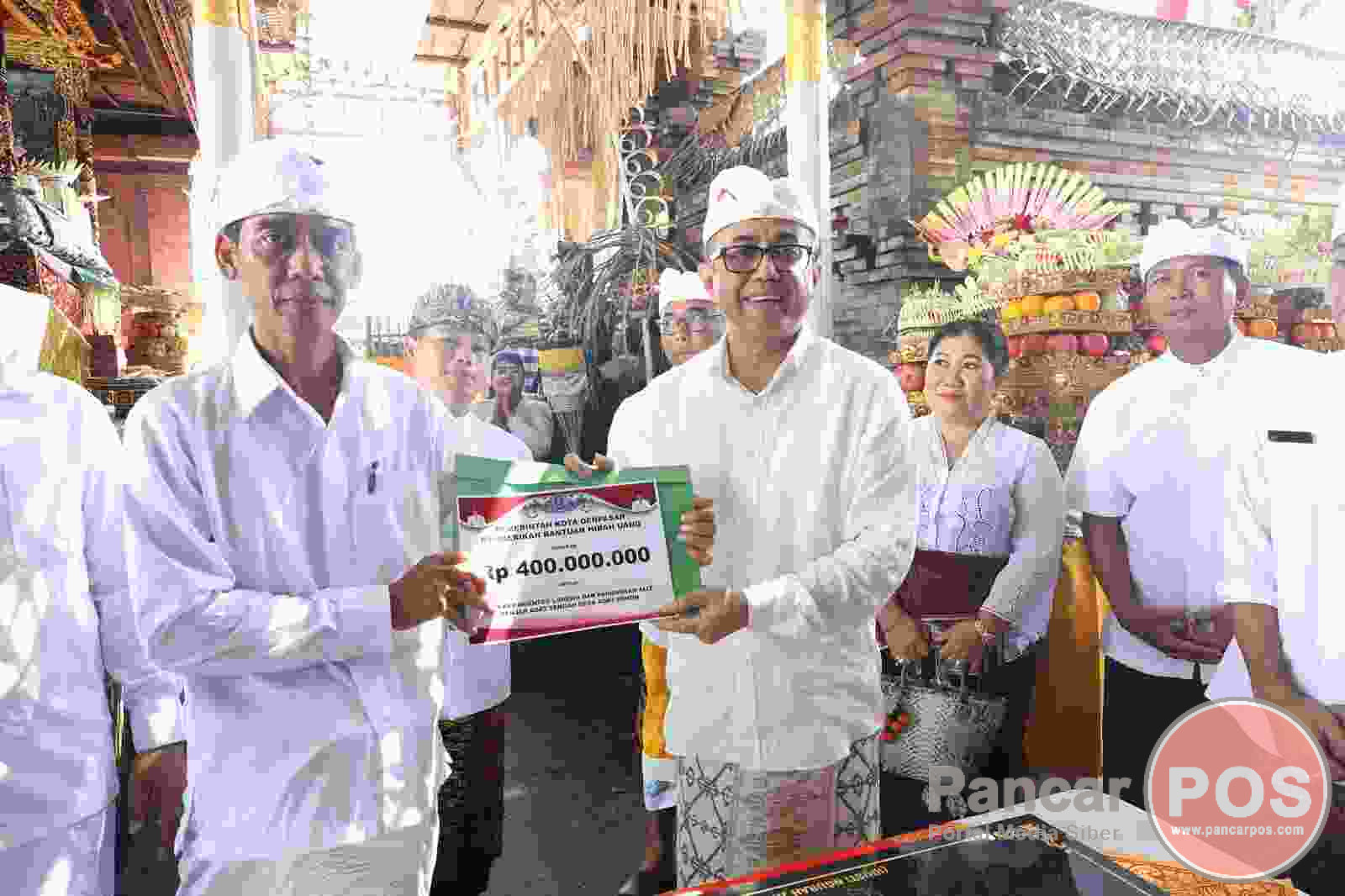 Dalam kesempatan tersebut, Wali Kota Jaya Negara tidak hanya hadir secara seremonial, tetapi juga turut menandatangani prasasti sebagai penanda pelaksanaan karya, sekaligus menyerahkan dana hibah sebesar Rp400 juta untuk mendukung jalannya upacara yadnya.