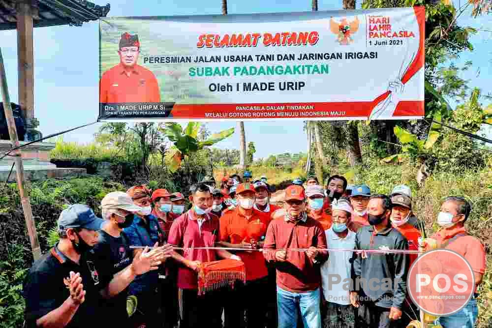 Di sisi lain, Gede Oka Winaya yang juga Sekretaris PAC PDI Perjuangan Kecamatan Marga menyebutkan bantuan Made Urip sangat melimpah di Subak Padangakitan. Terbukti jalan dan irigasi subak ini telah terealisasi, juga berkat Made Urip yang terpilih lima periode di DPR RI dengan total 255.130 suara terbanyak Dapil Bali dan ketujuh suara terbanyak nasional. “Krama subak juga secara swadaya dan bergotong royong ikut mewujudkan bantuan ini, dan bertepatan dengan 1 Juli di Hari Lahir Pancasila diberinama Jalan Banteng. Tidak lupa juga apapun program ke depan akan dibantu diwujudkan bersama Bapak Made Urip,” paparnya. Saat itu, Made Urip mengaku Jalan Banteng ini merupakan wujud Pancasila dalam Tindakan, dengan bergotong royong membangun jalan usaha tani dan jaringan irigasi untuk mendapat keadilan infrastruktur buat petani dan kaum Marhaen. Bantuan ini bentuk bukti konkrit yang dikerjakan oleh M-U sebagai pengejawantahan dari nilai-nilai Pancasila. “Pancasila tidak cukup hanya diucapkan, tapi harus dikerjakan dalam bentuk program-program konkret di lapangan. Keadilan ini juga harus ditegakkan bagi rakyat kecil, dan elite harus beri teladan pada rakyat!,” papar M-U.