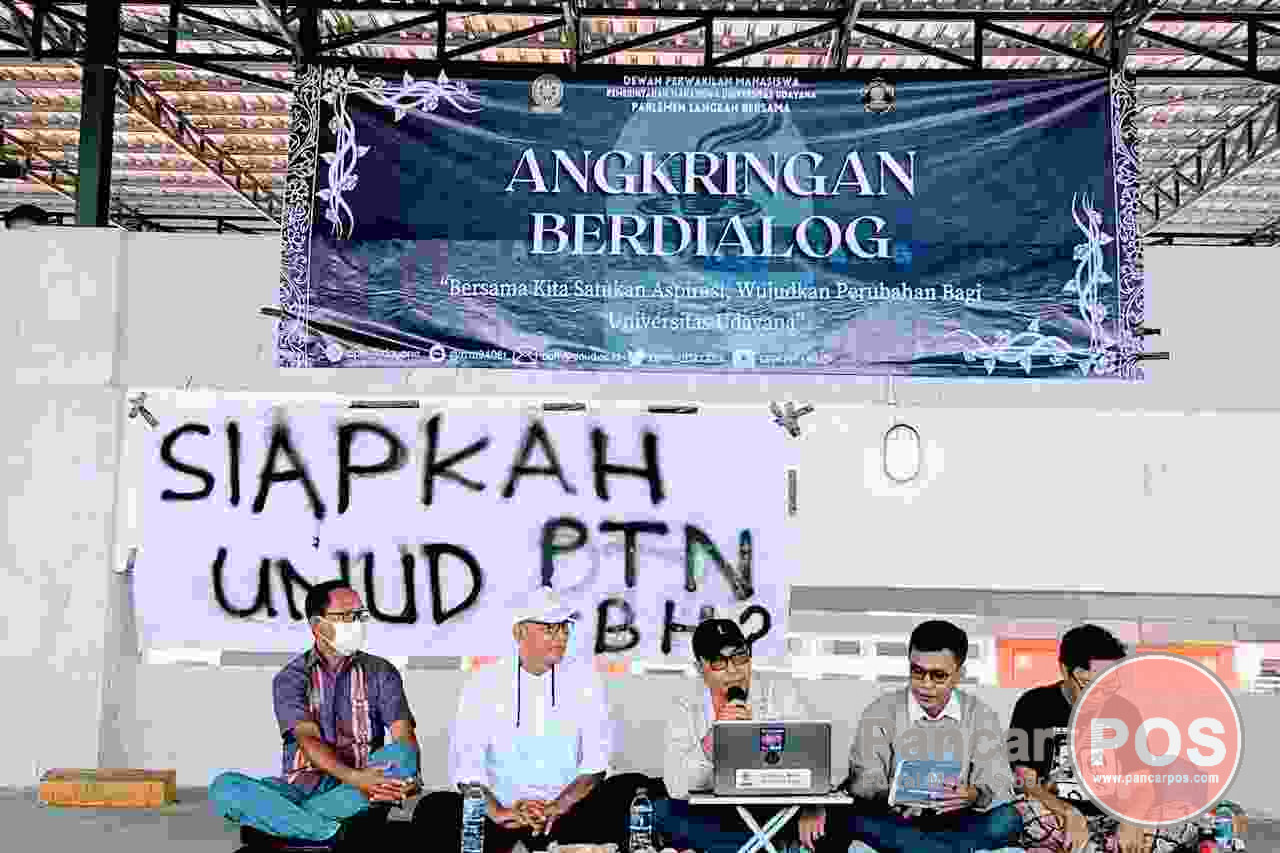 Denpasar, PancarPOS | Perguruan Tinggi Badan Hukum (PTNBH) merupakan isu sensitif di berbagai kalangan universitas negeri di seluruh Indonesia, tidak terkecuali Universitas Udayana (Unud). Persepsi publik tentang PTNBH pun cenderung negatif, misalnya PTNBH berimbas pada peningkatan Uang Kuliah Tunggal (UKT) dan/atau mengarah pada topik komersialisasi pendidikan. Guna terhindar dari kesesatan informasi terkait PTNBH, maka Dewan Perwakilan Mahasiswa (DPM) Unud menggelar diskusi dalam forum Angkringan Berdialog dengan topik “Siapkah Unud PTNBH?”.