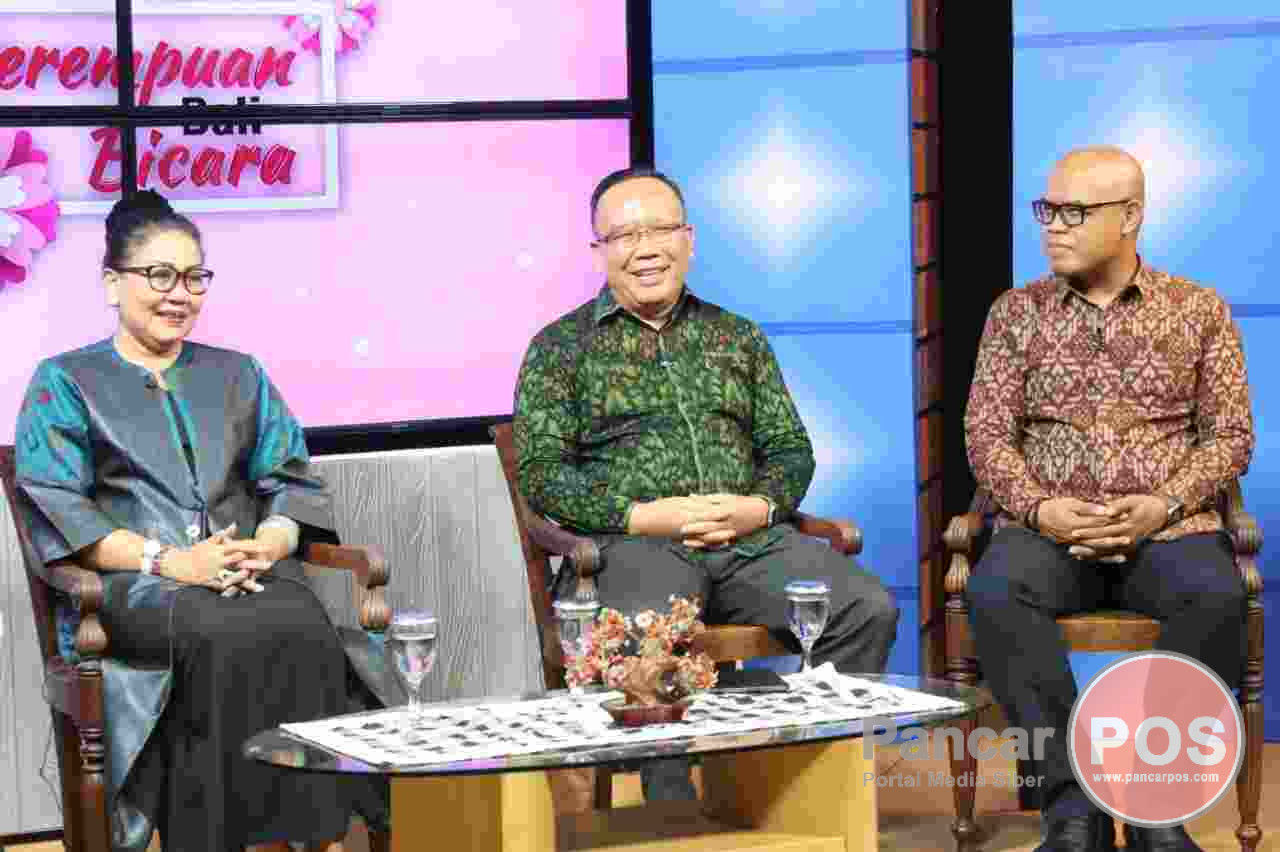 Denpasar, PancarPOS |Â Ketua TP PKK Provinsi Bali, Ny. Putri Koster bersama Prof. I Made Damriyasa selaku Koordinator Kelompok Ahli Pembangunan dan Rektor Institut Seni Indonesia (ISI) Denpasar Prof. Wayan Adnyana menjadi narasumber dalam acara Perempuan Bali Bicara di Studio Bali TV, Jumat (3/2/2023). Mengawali arahannya, Ny. Putri Koster menyampaikan bahwasannya PKK dalam pergerakannya akan melakukan aksi sosial dan sosialisasi, dan kehadiran PKK kali ini dalam rangka melakukan sosialisasi kepada masyarakat terkait Pembangunan Adat, tradisi, seni, budaya dan kearifan lokal Bali. Dimana tahun ini merupakan tahun kelima kepemimpinan Gubernur Bali, Bapak Wayan Koster dan dalam kepemimpinannya telah berhasil membangun peradaban dengan 44 tonggak penanda Bali Era Baru. “Hal ini merupakan hasil kerja keras semua elemen baik pemerintah dan dukungan masyarakat,” katanya.
