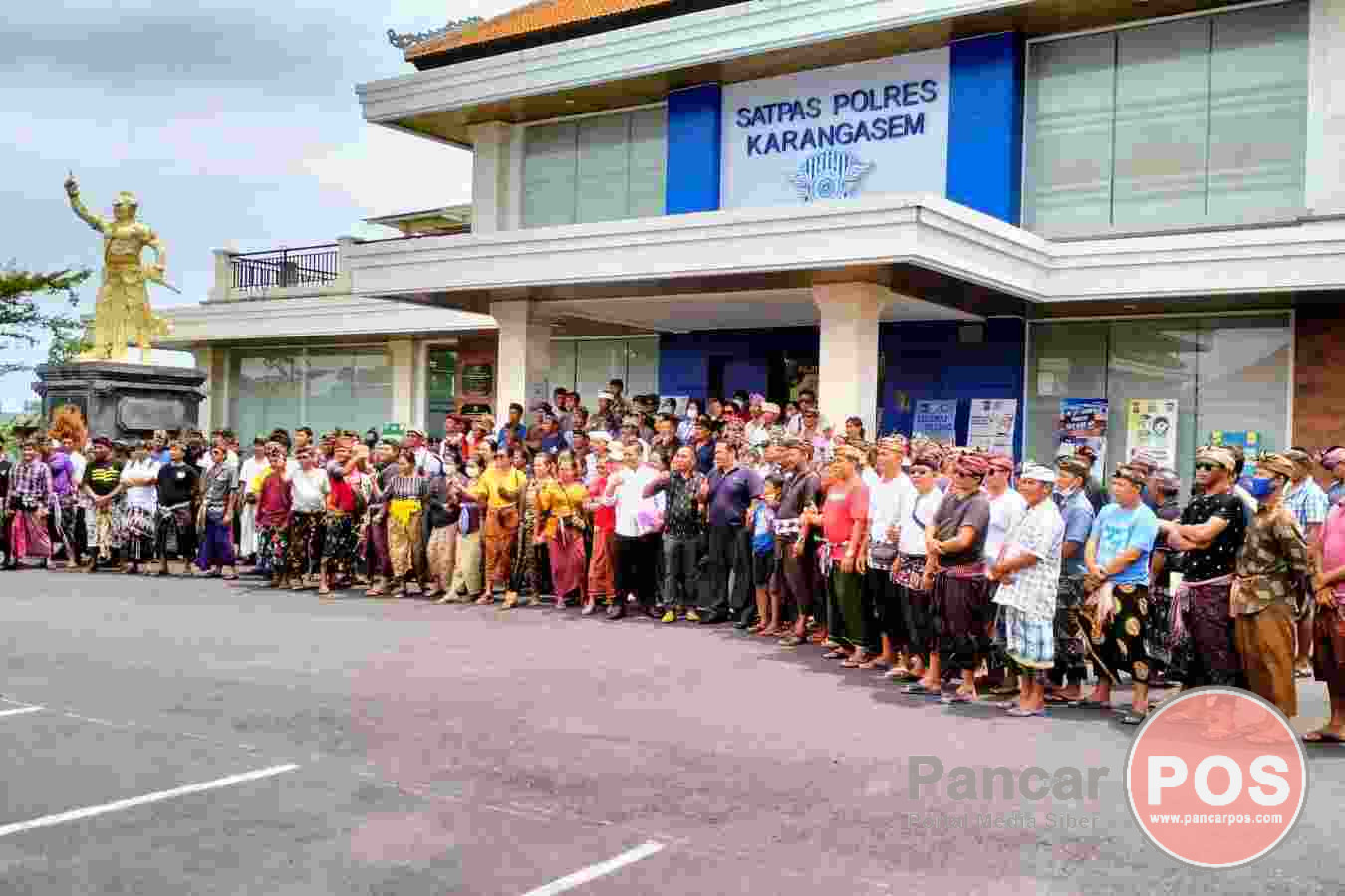 Ratusan masyarakat Desa Bugbug ikut turun langsung menggerudug Kantor Polres Karangasem, pada Minggu (2/4/2023) sekitar pukul 11.00 WITA. (foto: ist)
