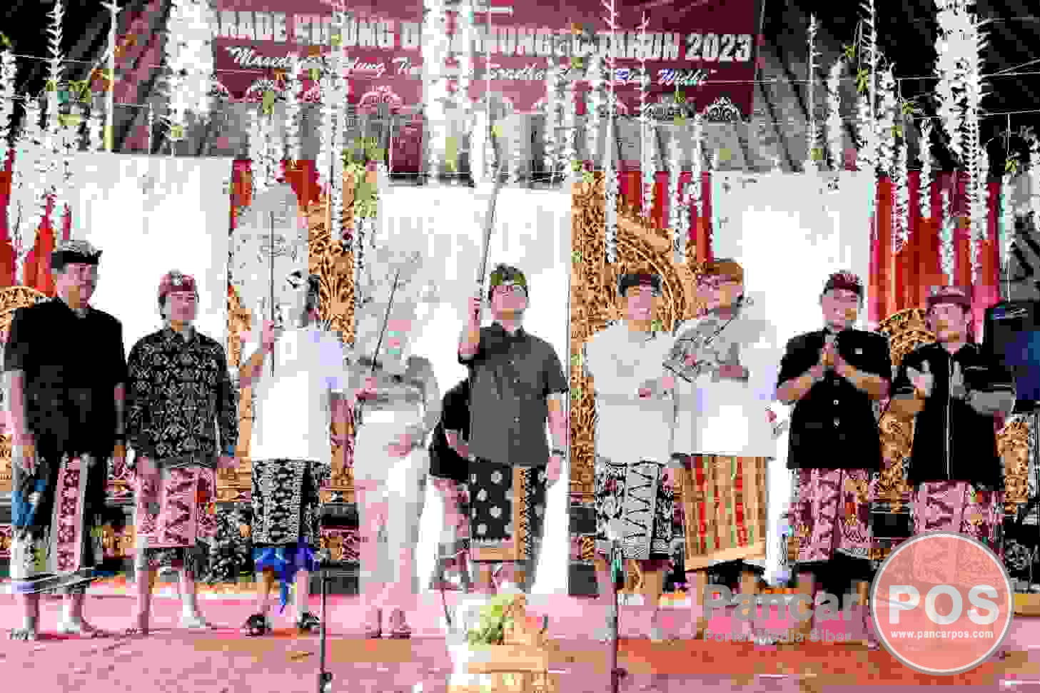 Badung, PancarPOS | Sekretaris Daerah Kabupaten Badung I Wayan Adi Arnawa, mewakili Bupati Badung menghadiri sekaligus membuka Parade Kidung Desa Munggu Tahun 2023 dengan ditandai menarikan Kayon Wayang kulit yang diiringi dengan Gong Geguntangan “Masadena Kidung Nincapang Sradha Bhakti Ring Widhi”, bertempat di Wantilan Pura Puseh dan Pura Desa, Desa Adat Munggu Mengwi, Minggu (2/7/2023). Parade Kidung yang bertemakan “Satyam Shivam Sundaram” (Bhakti Ring Widhi Melarapan Kidung) ini turut dihadiri Camat Mengwi I Nyoman Suhartana serta unsur Tripika Kecamatan Mengwi, Perwakilan OPD terkait di Pemkab Badung, Perwakilan Widya Sabha Kabupaten Badung dan Kecamatan Mengwi, Perbekel Desa Munggu I Ketut Darta, Ketua Widya Sabha Desa Munggu I Made Suardana, Bendesa Adat Munggu serta tokoh masyarakat setempat.