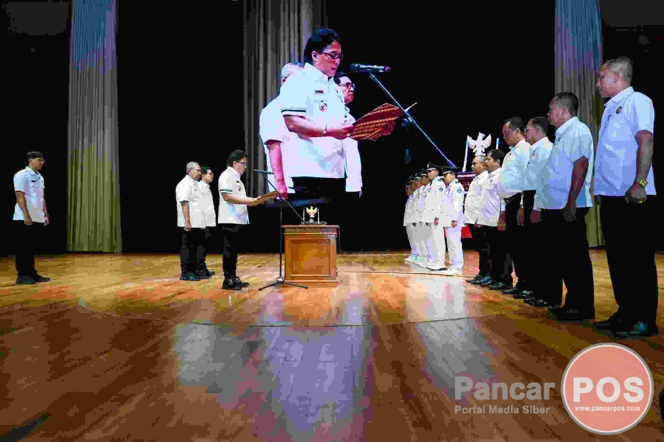 Badung, PancarPOS | Bupati Badung I Nyoman Giri Prasta mengukuhkan dan memperpanjang masa jabatan Perbekel dan Badan Permusyawaratan Desa (BPD) se-Kabupaten Badung sekaligus menyerahkan hadiah kepada Juara Evaluasi Perkembangan Desa dan Lomba Desa Tingkat Kabupaten Badung. Acara dilaksanakan di Balai Budaya Giri Nata Mandala, Rabu (3/7/2024), dihadiri Ketua DPRD Kabupaten Badung Putu Parwata, Sekda Wayan Adi Arnawa, jajaran Forkopimda Badung, Kepala OPD di lingkungan Pemkab Badung, Camat se-Kabupaten Badung, Ketua TP. PKK Kabupaten Badung, Perbekel se-Kabupaten Badung, dan Anggota BPD se-Kabupaten Badung.