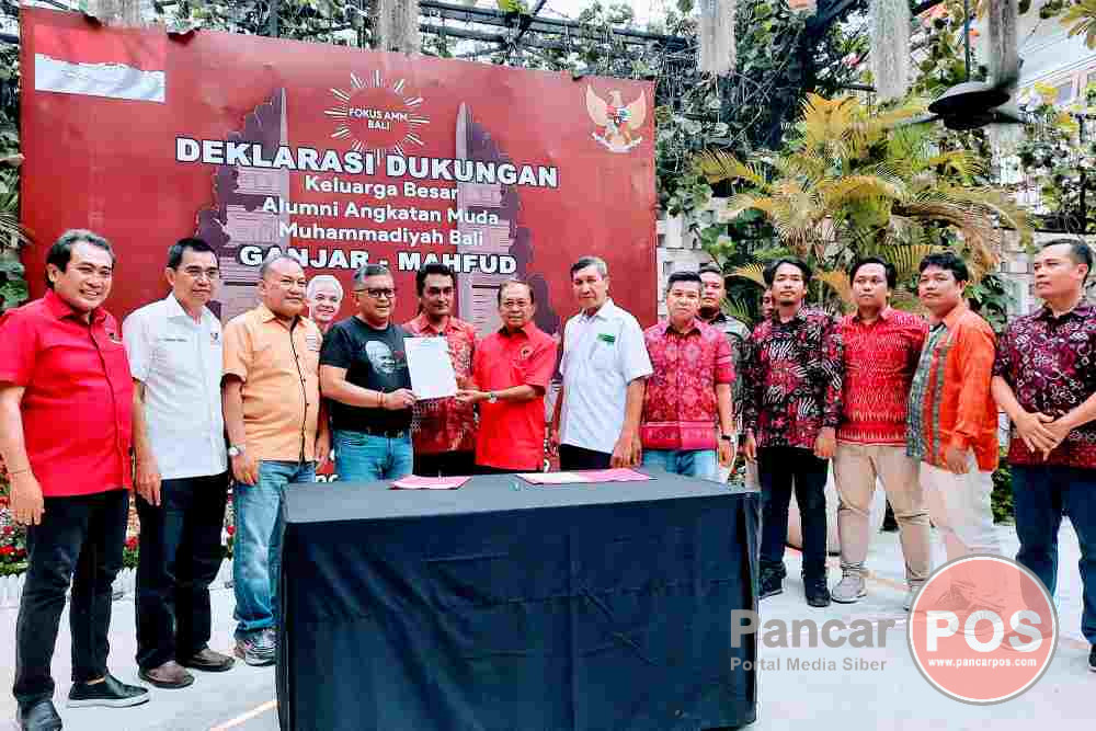 Denpasar, PancarPOS | Bali sebagai pulau spritual dan religius, namun ada kejadian pencopotan baliho Ganjar-Mahfud saat Kunker Presiden Joko Widodo di Bali, malah meningkatkan dukungan secara nasional. Terbukti kali ini, dari Keluarga Besar Alumni Angkatan Muda (AAM) Muhammadiyah Bali yang secara total memberikan dukungan kepada Ganjar-Mahfud. Keluarga Besar AAM Muhammadiyah Bali menggelar Deklarasi dukungan Capres dan Cawapres, Ganjar-Mahfud di Denpasar, pada Sabtu (4/11/2023). Dukungan diterima langsung oleh Sekjen DPP PDI Perjuangan, Hasto Kristiyanto bersama Ketua Tim Pemenangan Ganjar-Mahfud Daerah Provinsi Bali yang juga Ketua DPD PDI Perjuangan Provinsi Bali, Wayan Koster disaksikan oleh partai pengusung dari PPP, Perindo, Hanura bersama relawan Ganjar-Mahfud.