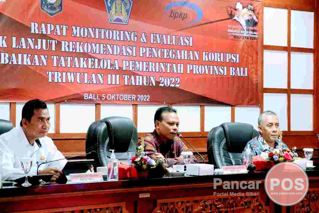 Denpasar, PancarPOS | Sekretaris Daerah Provinsi Bali, Dewa Made Indra, menegaskan bahwa Manajemen aset, pengadaan barang dan jasa dan optimalisasi pendapatan daerah menjadi konsen besar bagi Pemprov Bali dalam Pencegahan Korupsi dan Perbaikan Tata Kelola Pemerintah Provinsi Bali. Sekda Dewa Indra menyatakan Pemprov Bali terus mendorong penggunaan e-katalog terutama e-katalog lokal Bali dalam proses pengadaan barang dan jasa di Provinsi Bali. “Untuk ke depannya, bahkan kami terobsesi agar hanya pengadaan proyek berat saja yang dilelang, sisanya bisa melalui e-katalog,” tandas Sekda Dewa Indra dalam pembukaan Rapat Monev Tindak Lanjut Rekomendasi Pencegahan Korupsi dan Perbaikan Tata Kelola Pemerintah Provinsi Bali sampai dengan TW III Tahun 2022, di Ruang Rapat Sabha Adhyasta Utama, Kantor Inspektorat Daerah Provinsi Bali, Denpasar, pada Rabu (5/10/2022) pagi.