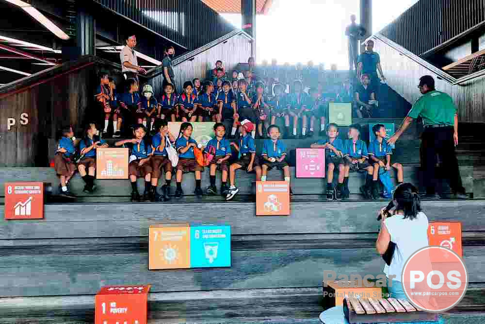 Denpasar, PancarPOS | Kura Kura Bali berkolaborasi dengan Bali Abode Galeri untuk kegiatan pengenalan Bali Abode Galeri dan Bahasa Bali yang merupakan bentuk respon terhadap surat yang dikirimkan SDN 3 Serangan. Kegiatan dilaksanakan di Gedung U-Shape dan Auditorium Kampus UID Bali, pada Jumat, 6 Oktober 2023 dari Jam: 07.00 – 11.45 WITA. Dengan total peserta 207 anak-anak dari SDN 3 Serangan memperkenalkan Bali Abode Galeri sebagai media pelestarian sejarah budaya Bali. Selain itu, juga mengenal isi Galeri Abode yang memamerkan patung, gamelan, dan pakaian daerah khususnya di Bali. Anak anak SD dari kelas 1 hingga 6 SD ini, makin nampak ceria setelah mempelajari dongeng Bali sebagai bentuk pelestarian bahasa daerah.