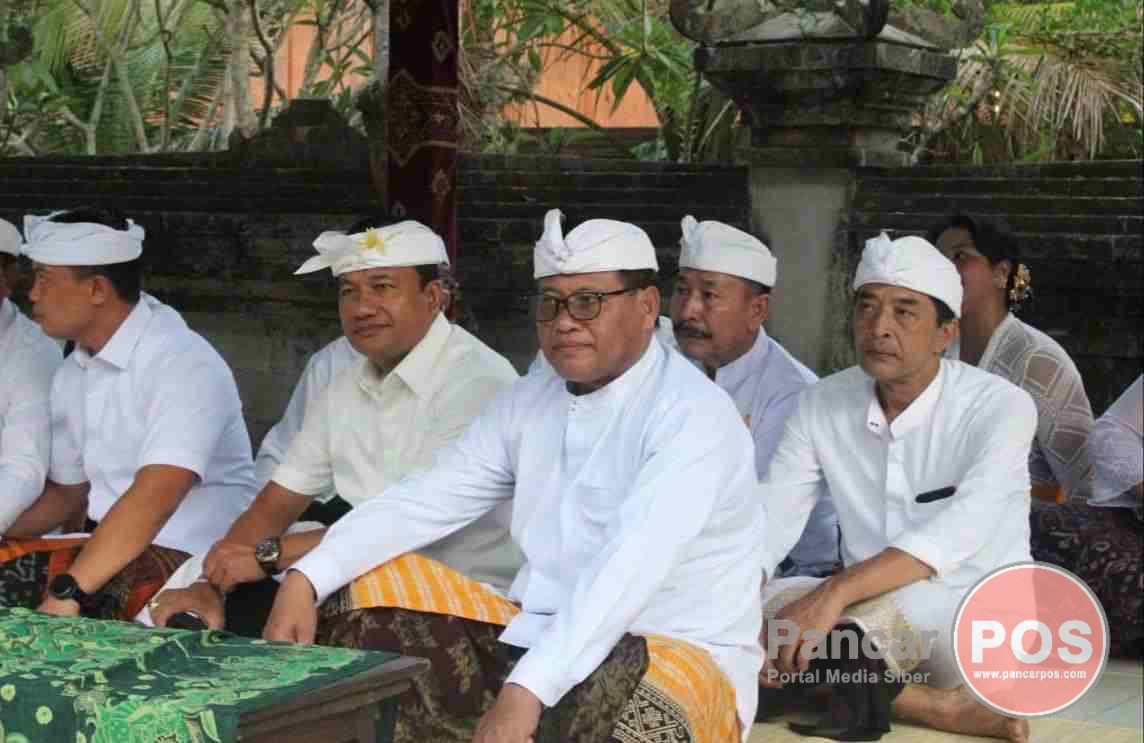 Denpasar, PancarPOS | Sekretaris Daerah Kota Denpasar, Ida Bagus Alit Wiradana menghadiri Karya Ngeratep, Ngurip, Melaspas lan Pasupati Sesuhunan Ida Ratu Ayu Mas Rangda di Pura Kahyangan Desa Adat Sanur, bertepatan Rahina Kuningan, pada Sabtu (5/10/2024).