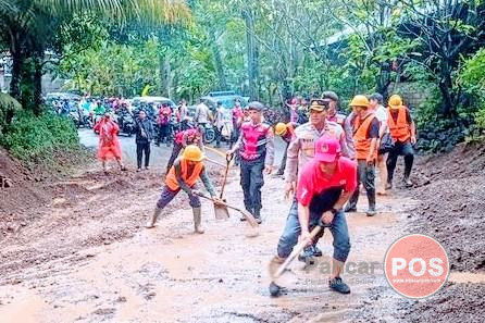 Karangasem, PancarPOS | Bupati Karangasem I Gede Dana terjun langsung menangani longsor yang menutup akses jalan Amlapura-Denpasar, tepatnya di Desa Bugbug, Karangasem, Bali. Hal tersebut dilakukan supaya akses jalan segera dilalui kendaraan karena sudah hampir empat jam terjebak macet.