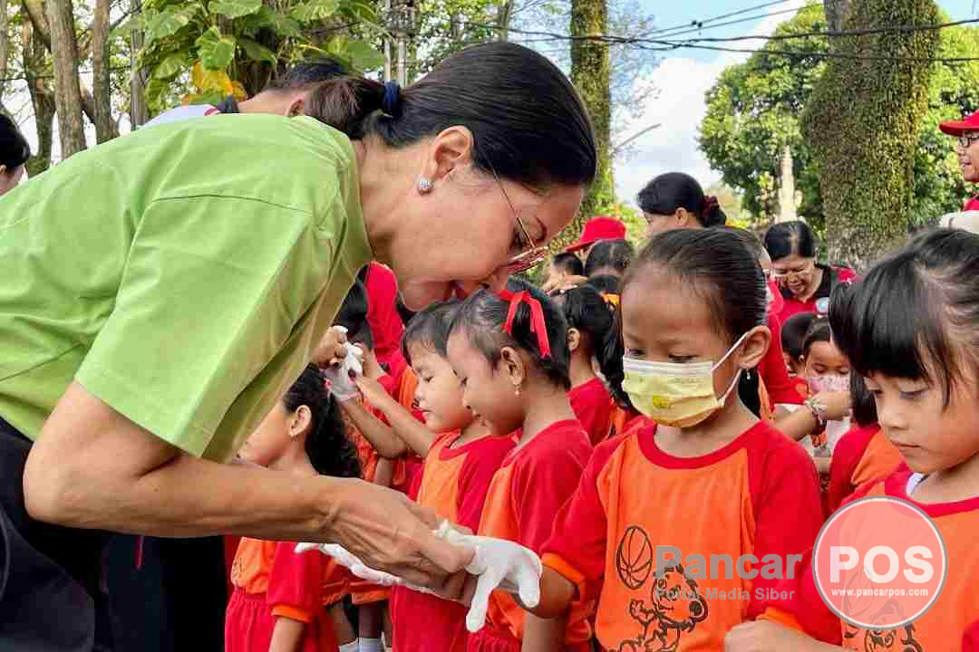 Denpasar, PancarPOS | Tim Penggerak Pemberdayaan Kesejahteraan Keluarga (TP PKK) Provinsi Bali didukung TP PKK Kota Denpasar menggelar kegiatan edukasi ‘Pungut, Pilah dan Buang Sampah Pada Tempatnya’, Sabtu (7/10/2023). Kegiatan yang menyasar ratusan siswa TK Dharma Putra Banjar Kedaton itu dilaksanakan di Lapangan I Gusti Ngurah Made Agung dan dipimpin langsung oleh Pj. Ketua TP PKK Provinsi Bali drg. Ida Mahendra Jaya.