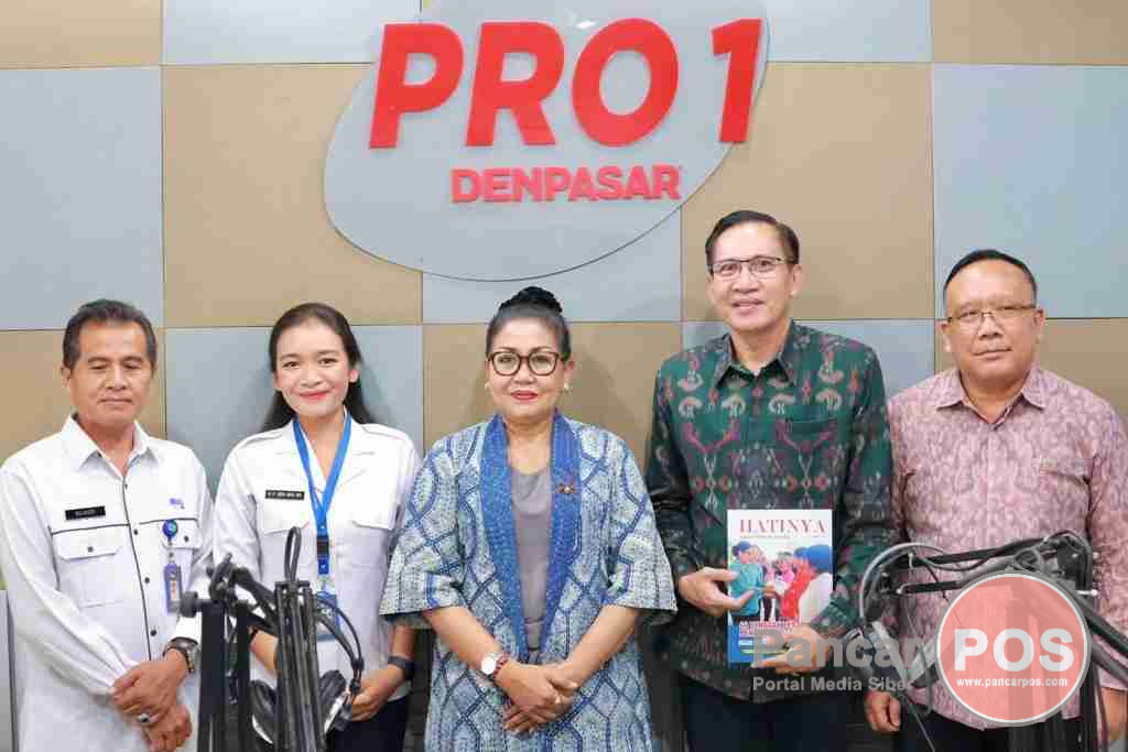 Denpasar, PancarPOS | Ketua TP PKK Provinsi Bali Ny. Putri Koster berkesempatan menjadi narasumber dalam program Dialog Denpasar dengan tema “44 Tonggak Peradaban Penanda Bali Era Baru, Memuliakan Bahasa, Kasara, dan Sastra Bali” bersama dengan Koordinator Kelompok Ahli Bidang Pembangunan Pemerintah Provinsi Bali Prof. Dr. drh. I Made Damriyasa, M.S. dan Kelompok Ahli Bidang Agama, Adat, Tradisi, Seni dan BUdaya Drs. Gede Nala Antara, M.Hum, bertempat di Studio RRI Denpasar, Denpasar pada Senin (8/5/2023).