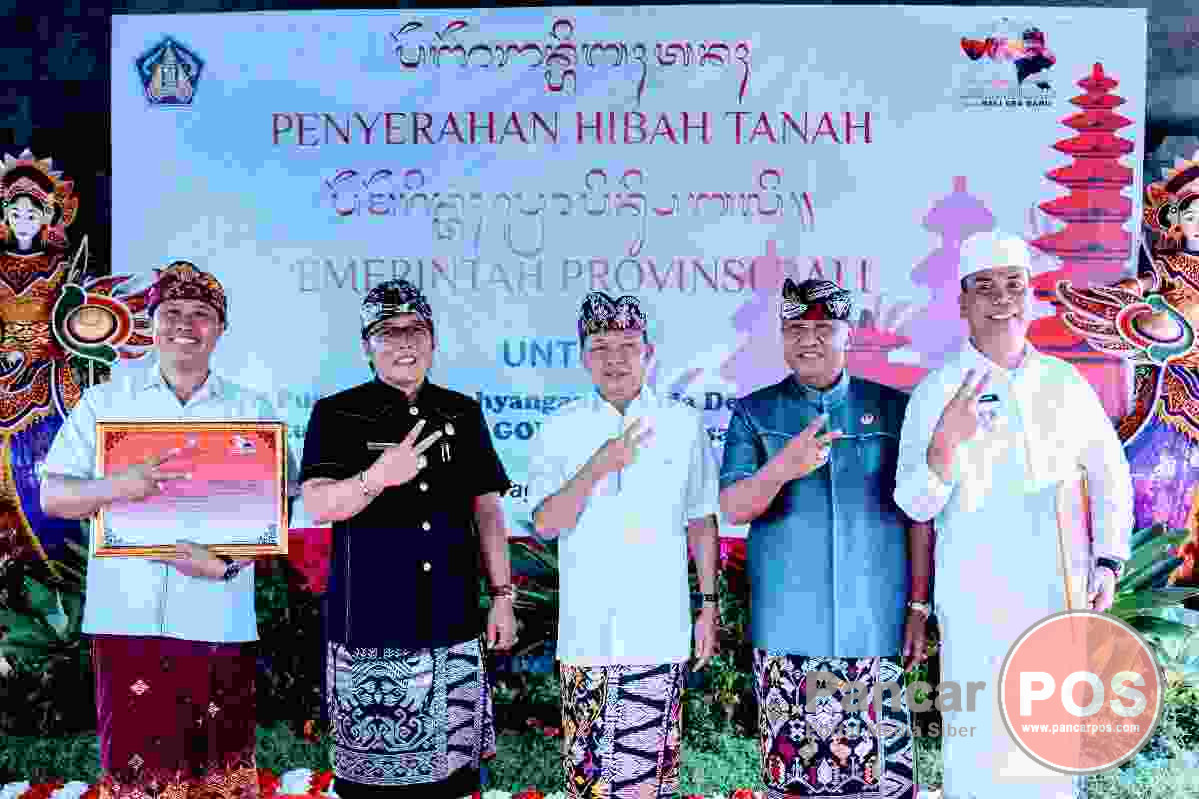 Badung, PancarPOS | Bupati Giri Prasta menyatakan pemberian hibah tanah seluas 67 are oleh Pemprov Bali bagi Desa Adat Tandeg dan Desa Tibubeneng sejalan dengan kebijakan Pemkab Badung dalam membangun infrastruktur di bidang budaya dan pemerintahan untuk mendukung kawasan Tibubeneng menjadi daerah wisata yang berkelanjutan. “Atas nama Pemerintah pribadi dan masyarakat Desa Adat Tandeg dan Desa Tibubeneng saya mengucapkan terimakasih kepada Bapak Gubernur dan Pemerintah Provinsi Bali karena telah menghibahkan aset tanah Pemprov untuk perluasan Pura Dalem Desa Adat Tandeg dan untuk Kantor Perbekel serta GOR Desa Tibubeneng,” ujar Giri Prasta yang juga sempat ikut menunjukan salam 2 periode, saat Senin (8/5/2023) di Wantilan Pura Dalem Desa Adat Tandeg.