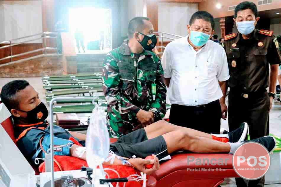 Jembrana, PancarPOS | Serangkaian dengan Hari Ulang Tahun (HUT) ke-60 Korem 163/Wira Satya menggelar kegiatan sosial Donor Darah Plasma Konvalesen. Pendonor merupakan jajaran TNI/Polri, pemerintah hingga masyarakat umum, terlibat dalam kegiatan donor darah ini. Dipusatkan di Auditorium kabupaten Jembrana, Selasa (9/2/2021), kegiatan terselenggara berkat kerjasama antara TNI, Palang Merah Indonesia (PMI) kabupaten Jembrana dan Pemkab Jembrana. Turut hadir dalam kegiatan tersebut Bupati Jembrana I Putu Artha, Dandim 1617 Jembrana Letkol Inf. Hasrifuddin Haruna beserta jajaran forkopimda Jembrana.