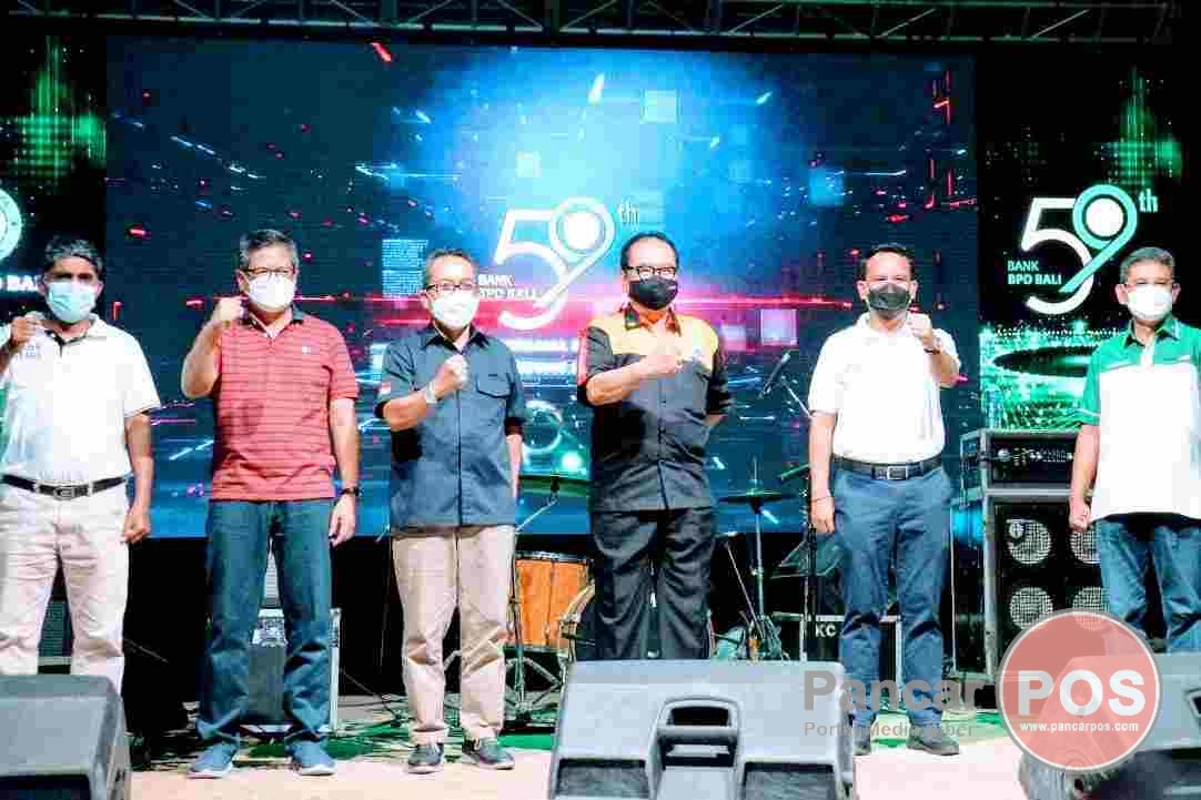 Denpasar, PancarPOS | Menyambut HUT ke-59 Bank BPD Bali menggelar rangkain sejumlah kegiatan untuk menggerakan dan membangkitkan ekonomi Bali. Salah satunya Pameran UMKM dengan beragam hiburan live musik yang menggetarkan upaya pemulihan ekonomi Bali di Kebun Vintage, Desa Biaung Denpasar, Sabtu (8/5/2021). Pada kesempatan itu, Dirut Bank BPD Bali, I Nyoman Sudharma SH., MH., mengakui pameran yang diikuti 450 UKM binaan BPD Bali ini, merupakan bagian dari visi misi sebagai bank plat merah daerah pendukung UMKM. Bahkan setiap kegiatan Bank BPD Bali dipastikan menggarap UMKM sebagai prospek bisnis di tengah pademi Covid-19. Ditegaskan direksi bank asal Desa Ungasan, Kuta Selatan, Badung ini, tidak ingin program BPD Bali dalam menggerakan UMKM hanya menjadi hisapan jempol belaka, sehingga secara nyata memfasilitasi pameran UMKM dengan membukan gerai di setiap cabang UMKM.