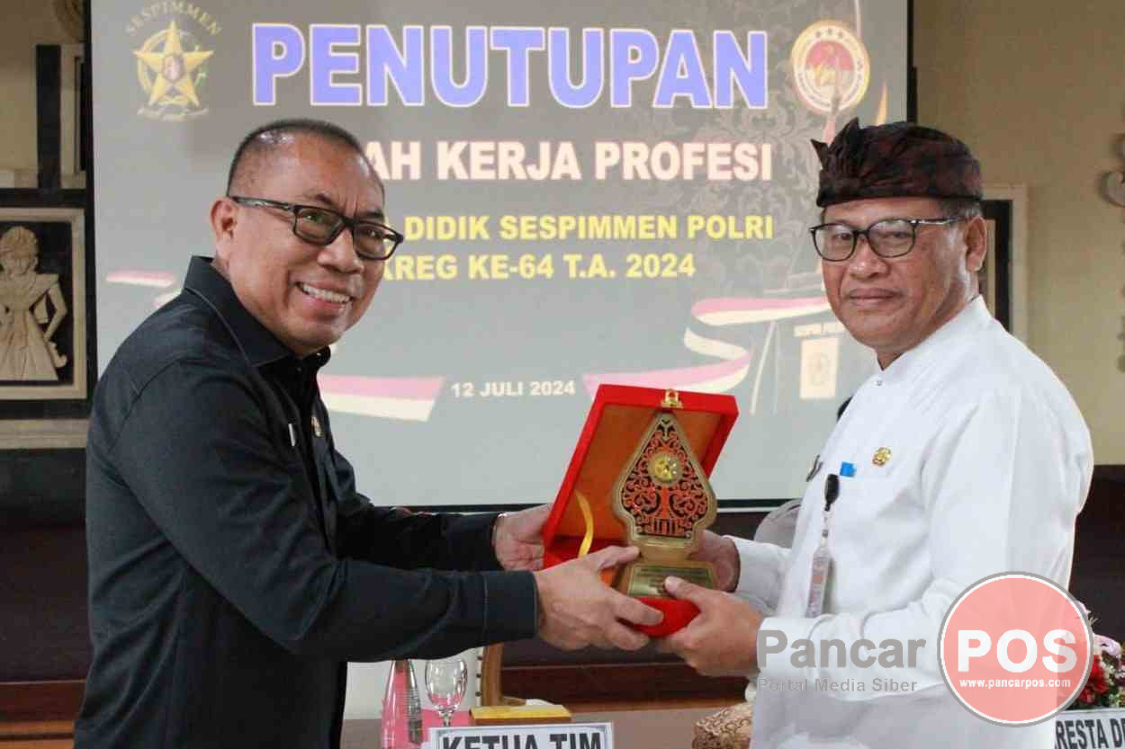 Denpasar, PancarPOS | Sekretaris Daerah Kota Denpasar, Ida Bagus Alit Wiradana menghadiri Penerimaan Kegiatan Kuliah Kerja Profesi Peserta Didik Sespimmen Polri Dikreg Ke-64 Tahun Anggaran 2024 yang dilaksanakan di Gedung Pesat Gatra Polresta Denpasar, pada Selasa (9/7/2024). Turut hadir dalam kegiatan tersebut Kapolresta Denpasar, Kombes Pol. Wisnu Prabowo, SiK.,MM, Forkopimda, tokoh masyarakat serta para Peserta Didik Sespimmen Polri Dikreg.