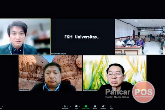 Badung, PancarPOS | Fakultas Kedokteran Hewan (FKH) Universitas Udayana mengadakan pertemuan dengan Faculty of Veterinary Medicine Khon Kaen University secara online melalui zoom meeting Selasa (27/12/2022). Hadir pada pertemuan ini Dekan, para Wakil Dekan, para Koodinator Program Studi, Koordinator Unit Pengelola Informasi dan Kerja Sama serta Tim Kerja Sama Luar Negeri FKH Unud. Pihak Faculty of Veterinary Medicine Khon Kaen University diwakili oleh Dean of Faculty of Veterinary Medicine, Profesor Dr. Bundit Tengjaroenkul. Vice Dean For Collaboration: Assist. Prof. Dr. Prawit Butudom dan Staff for international affairs officer research and graduate studies missions: Mr. Sitthiporn Kabbualoi.