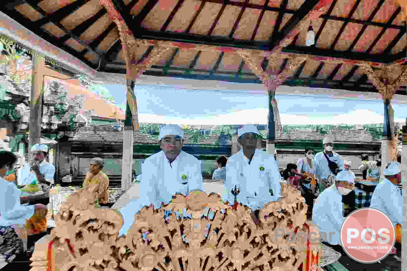 Gianyar, PancarPOS | Bertepatan rahina Tumpek Landep, Pura Santi Kawitan I Ratu Ngurah Agung Pasek Bandesa Panca Sanak Sapta Murti di Banjar Tibekauh, Melinggih Kelod Payangan, Gianyar melaksanakan Piodalan pada Sabtu (9/4/2022). Karya dipuput Jro Mangku Gde Pura Santi, I Wayan Warnata. Dalam pelaksanaan Piodalan tersebut, pemedek wajib mengikuti aturan prokes serta wajib menjaga kebersihan pura agar terbebas dari sampah. Hal tersebut sebagai bentuk bagian panitia karya dalam mendukung pemerintah menuju Bali GO Green.