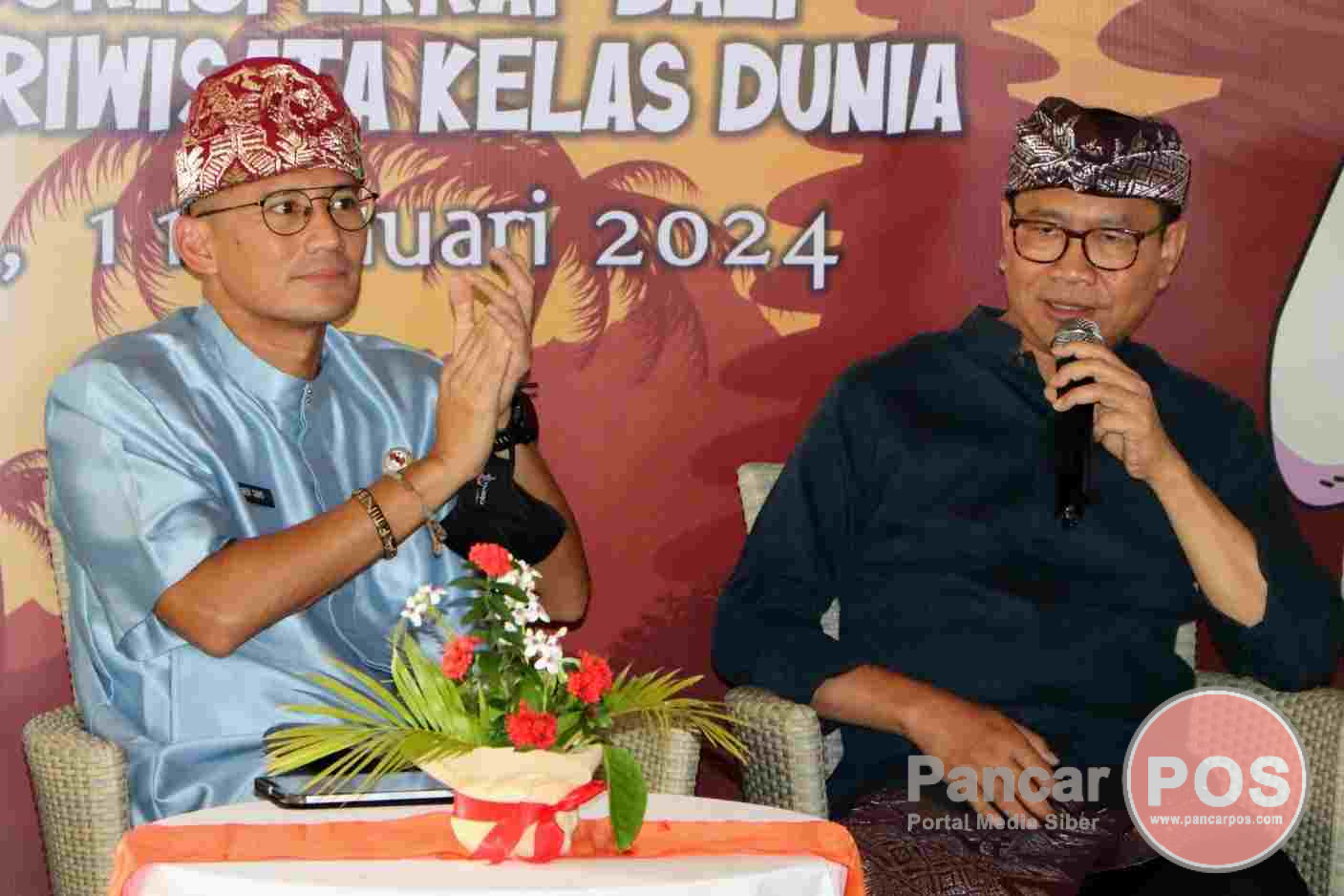 Badung, PancarPOS | Wakil Bupati Badung I Ketut Suiasa mendampingi Menteri Pariwisata dan Ekonomi Kreatif (Menparekraf) Sandiaga Uno pada acara Kelana Nusantara, dengan tema “Kolaborasi Ekraf Bali untuk Pariwisata Bali” di Jl. Dewi Sri, Kuta, Kamis (11/1/2024). Acara tersebut dihadiri pula Kadis Pariwisata Provinsi Bali, Kadis Pariwisata Badung, pelaku usaha dan UKM.