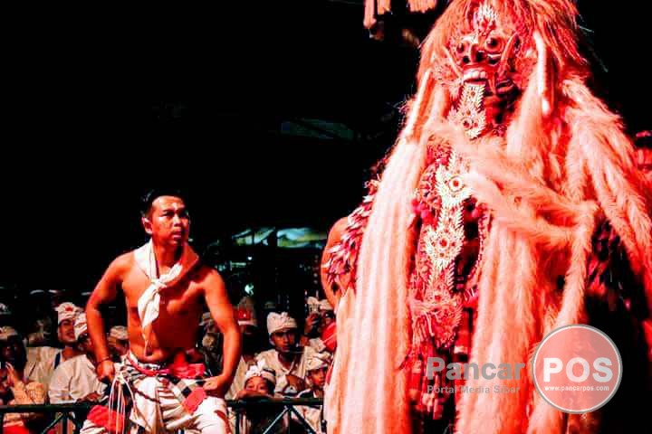 Gianyar, PancarPOS | Tradisi pertunjukkan magis Calonarang setiap enam bulan (Nganem Sasih) di Margi Agung, Jaba Pura Dalem Puri, Banjar Tebesaya, Peliatan, Ubud, pun kini terbatasi Pandemi Covid 19. Lantaran krama tidak berani mengabaikan aci penolak gering ini, calonarang tetap digelar, Minggu (11/10/2020) malam, namun tanpa penonton selain panitia. Demkian pula, tempat, waktu hingga durasi pertunjukan pun terpaksa menyesuaikan setelah pihak Prajuru Adat berkoordinasi dengan Satgas Covid-19 Gianyar.