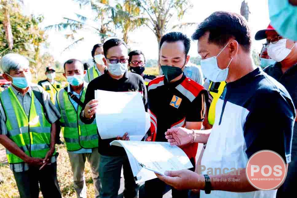 Klungkung, PancarPOS | Bupati Klungkung, I Nyoman Suwirta meninjau lokasi rencana pembangunan Embung di Dusun Beneng, Desa Getakan, Kacamatan Banjarangkan, Kabupaten Klungkung, Kamis (13/5/2021). Turut hadir Kadis PU Kabupaten Klungkung, I Made Jati Laksana, PPK Air Baku BWS Bali Penida, Agus Bawantu serta instansi terkait lainnya.