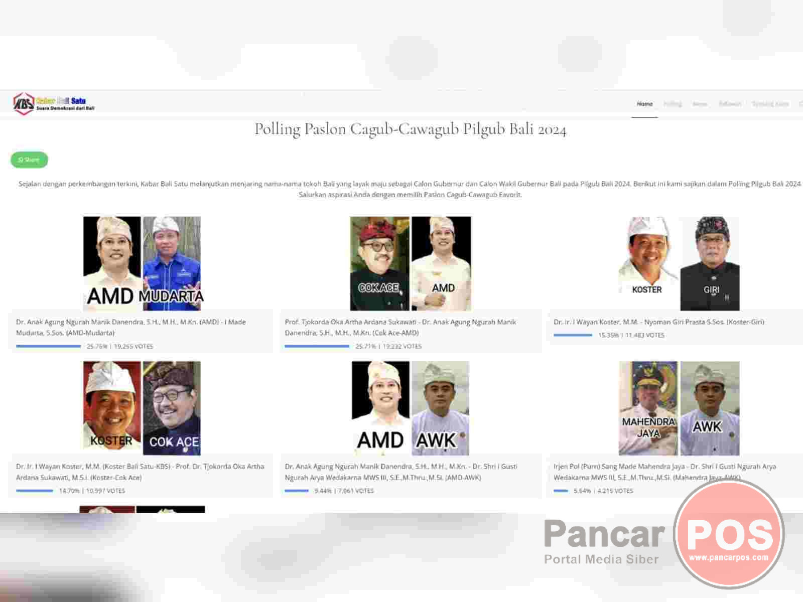 Terbukti dalam hasil Polling Paslon Cagub-Cawagub Pilgub Bali 2024 yang dimuat Kabar Bali Satu di website kabarbalisatu.com, dukungan untuk paslon Cok Ace-AMD terus meroket dalam hitungan jam. Kini Cok Ace-AMD menempati peringkat kedua tertingi dengan jumlah vote dukungan hingga berita ini dimuat adalah 19.232 vote atau 25,71 persen.