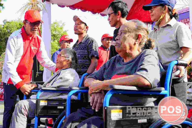 Badung, PancarPOS | Wakil Bupati Badung I Ketut Suiasa yang juga selaku Ketua Komda Lansia Kabupaten Badung menghadiri acara Peringatan Hari Lanjut Usia Nasional (HLUN) Ke-28, Jumat (12/7/2024) di lapangan Mangupraja Mandala Puspem Badung. Acara dirangkaikan dengan Jumat Ceria bersama UMKM Badung serta pemberian seragam olah raga kepada Lansia se-Kabupaten Badung dan penyerahan 2 buah kursi roda kepada 2 orang lansia disabilitas. Turut hadir Kadis Sosial I Ketut Sudarsana dan para lansia di Kabupaten Badung.