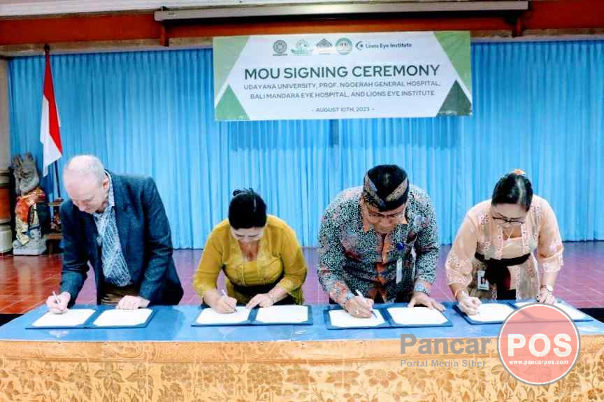 Denpasar, PancarPOS | Universitas Udayana (Unud), RSUP Prof. Ngoerah, RS Mata Bali Mandara, dan Lions Eye Institute, Australia menandatangani MoU bertempat di Aula Werkudara Gedung Poliklinik RSUP Prof. Ngoerah, Kamis (10/8/2023). Dalam kesempatan ini, Rektor Unud diwakili oleh Wakil Rektor Bidang Perencanaan, Kerjasama dan Informasi. Sebelum penandatanganan MoU dilaksanakan visiting profesor lecture oleh Prof. William Huxley Morgan dari Lions Eye Institute.