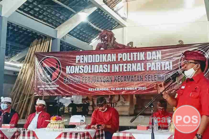 Selemadeg, PancarPOS | Ketua DPP PDI Perjuangan, Drs. I Made Urip, M.Si kembali turun gunung untuk memberikan Pendidikan Politik dan Konsolidasi Partai, sekaligus Sosialisasi Pemahaman 4 Pilar Kebangsaan yang dirangkai dengan sosialisasi paket Jaya-Wira (pasangan calon Bupati dan Wakil Bupati Tabanan, I Komang Gede Sanjaya dan I Made Edi Wirawan) di Wantilan Desa Bajera, Kecamatan Selemadeg, Tabanan, Sabtu (12/9/2020). Kehadiran Anggota DPR RI empat periode itu, langsung disambut ratusan kader banteng dan simpatisan partai se-Kecamatan Selemadeg untuk diberikan pemahaman 4 Pilar Kebangsaan. Kegiatan diawali dengan Pendidikan Politik dan Konsolidasi Kader se-Kecamatan Selemadeg yang dihadir Wakil Bupati Tabanan selaku Ketua DPC PDIP Tabanan I Komang Gede Sanjaya, Ketua DPRD Tabanan I Made Dirga, Ketua PAC PDIP Selemadeg I Made Suardika, bersama Pengurus Ranting dan tokoh masyarakat se-Kecamatan Selemadeg.