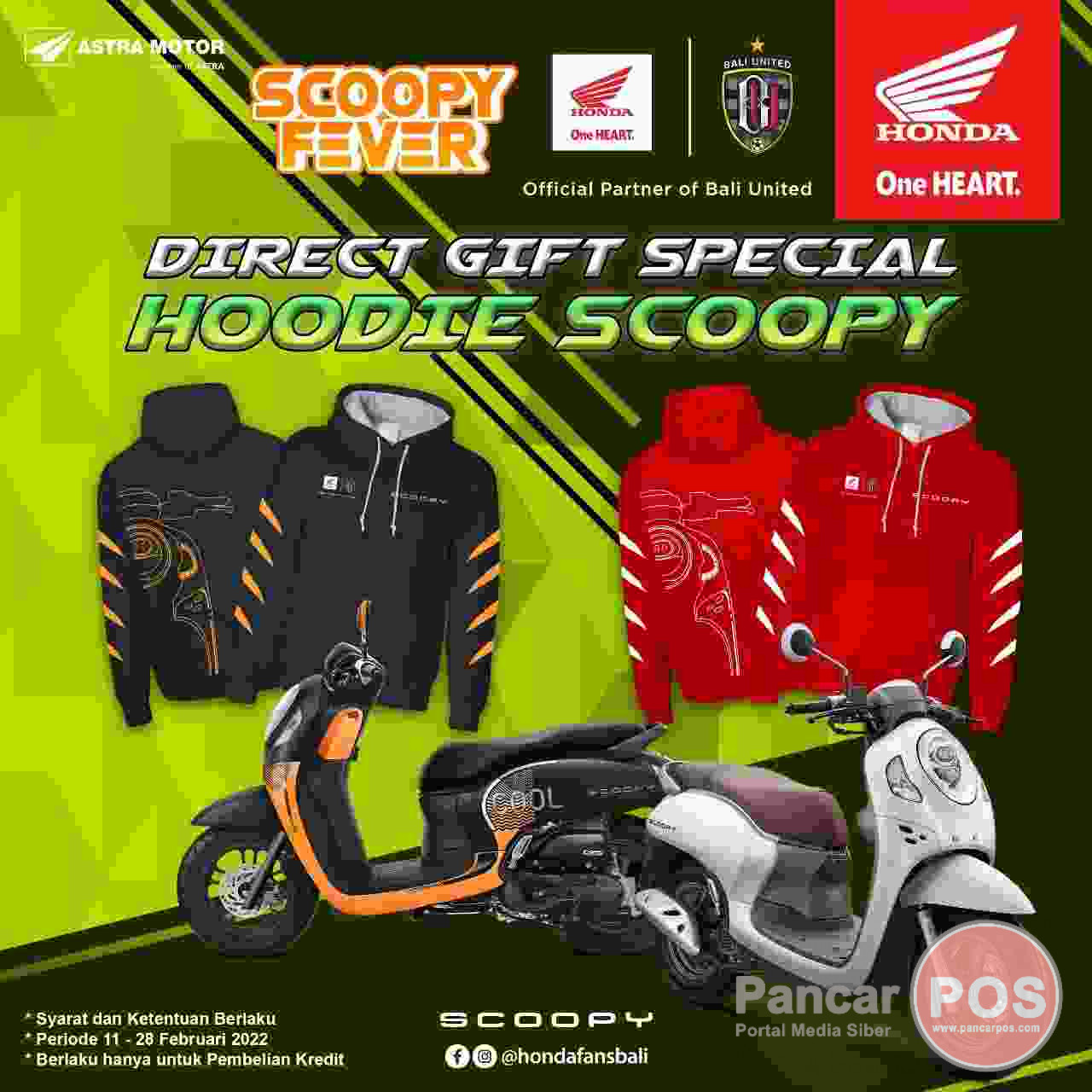 Denpasar, PancarPOS | Ada yang keren di bulan Pebruari, khusus wilayah Bali, Astra Motor bersama dengan dealer jaringan resmi Honda memberikan hadiah langsung untuk konsumen setianya. Promo special berupa direct gift special hoodie Scoopy ini diberikan untuk konsumen yang melakukan pembelian di periode 11-28 Pebruari 2022, untuk pembelian kredit di seluruh dealer Honda Bali.