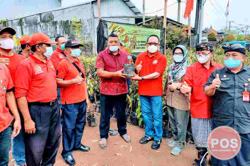 Tabanan, PancarPOS | Bertepatan dengan Hari Kasih Sayang atau Velentine Day, sekaligus rangkaian perayaan HUT ke-49 PDI Perjuangan, Anggota Komisi IV DPR RI Fraksi PDI Perjuangan, Drs. I Made Urip, M.Si., kembali menyebar bantuan 20 ribu bibit tanaman produktif ke seluruh Bali. Kali ini, Ketua DPP PDI Perjuangan membidangi Pertanian, Kehutanan dan Lingkungan Hidup itu, bersinergi dengan Balai Pengelolaan DAS dan Hutan Lindung (BPDAS-HL) Unda Anyar, Direktorat Jenderal Pengelolaan DAS dan Rehabililtasi Hutan, Kementerian Lingkungan Hidup dan Kehutanan (KLHK) menyerahkan seluruh bantuan tersebut kepada kelompok tani se-Bali secara simbolis di Posko Penyediaan Bibit Produktif, Desa Tua, Kecamatan Marga, Tabanan, Senin (14/2/2022) pagi.