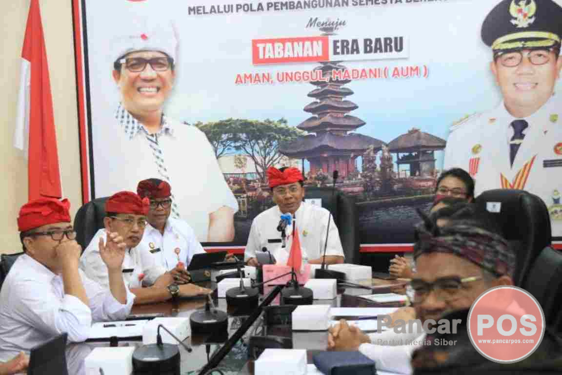 Tabanan, PancarPOS | Bupati Tabanan Dr. I Komang Gede Sanjaya, SE, MM, yang dalam hal ini diwakili oleh Sekda I Gede Susila, menerima exit meeting Tim Pemeriksaan Pendahuluan BPK RI Perwakilan Provinsi Bali terkait percepatan dan perluasan digitalisasi daerah dalam rangka optimalisasi pendapatan daerah, Kamis (13/10/2022). Kegiatan yang digelar di ruang rapat Bupati Tabanan yang difokuskan untuk mengetahui efektivitas upaya Pemkab Tabanan terkait percepatan dan perluasan digitalisasi daerah, turut dihadiri oleh jajaran tim pemeriksa BPK RI, Asisten II, Asisten III dan OPD terkait di lingkungan Pemkab Tabanan.