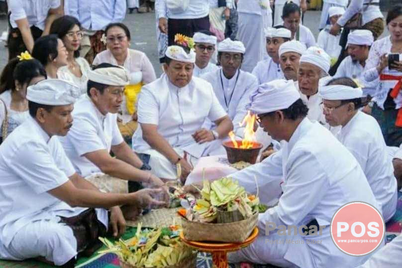 Karangasem, PancarPOS | Penyineban Karya Agung Ida Bhatara Turun Kabeh di Pura Agung Besakih, Karangasem dilaksanakan pada Redite Umanis, Wuku Merakih, Minggu, 14 April 2024 pukul 15.00 WITA. Pemujaan penyineban karya kali ini, dipuput oleh 3 sulinggih, yakni Ida Pedanda Gde Rai Tianyar dari Griya Menara Sidemen, Ida Pedanda Subawa Karang dari Griya Karang Budakeling, beserta Ida Sri Bhagawan Putra Natha Wangsa Pemayun dari Kedhatuwan Kawista Blatungan yang diiringi dengan wewalen lengkap.