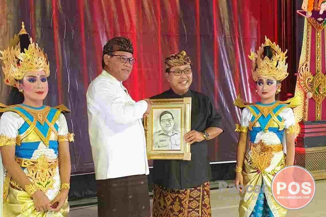 Dalam kesempatan tersebut Sekda Kota Denpasar menerima cinderamata lukisan wajah yang dibuat langsung Ketua Yayasan SD Cipta Dharma, dr. Bagus Darmayasa. ama/ksm/yar