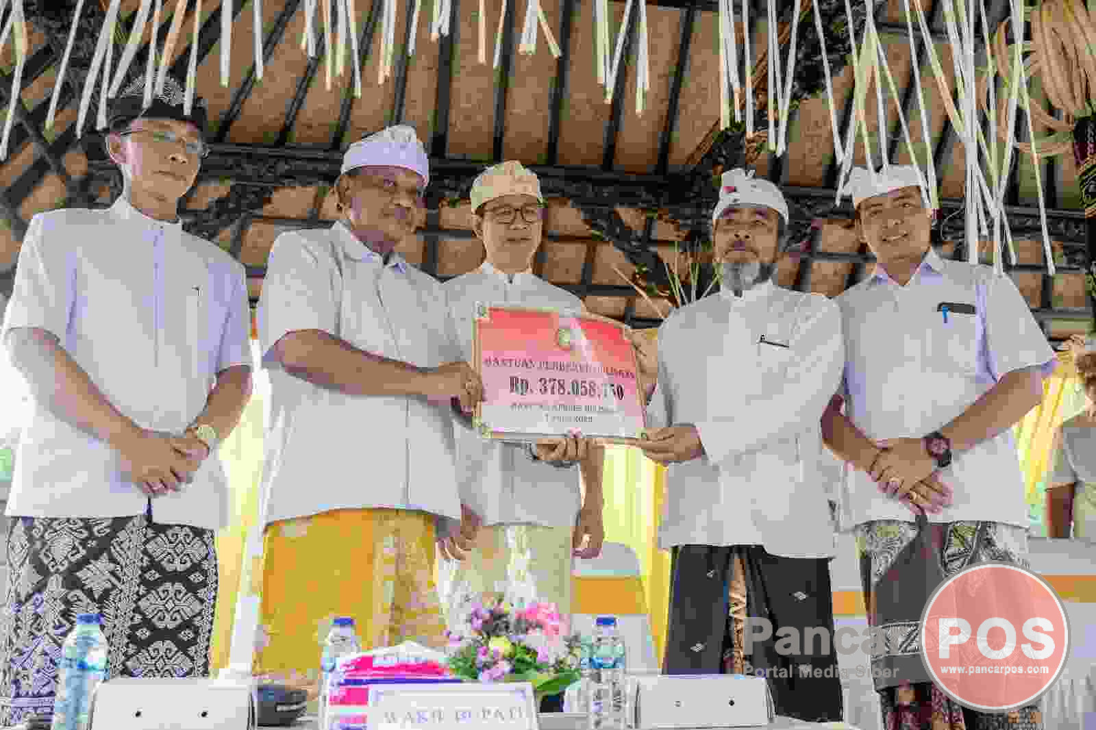 Sebagai bentuk perhatian dan komitmen dari Pemkab Badung, Wabup Suiasa secara simbolis menyerahkan bantuan dana BKK perubahan tahun 2023 sebesar Rp300 juta serta bantuan dari dana APBDes Gulingan sebesar Rp378 juta lebih.