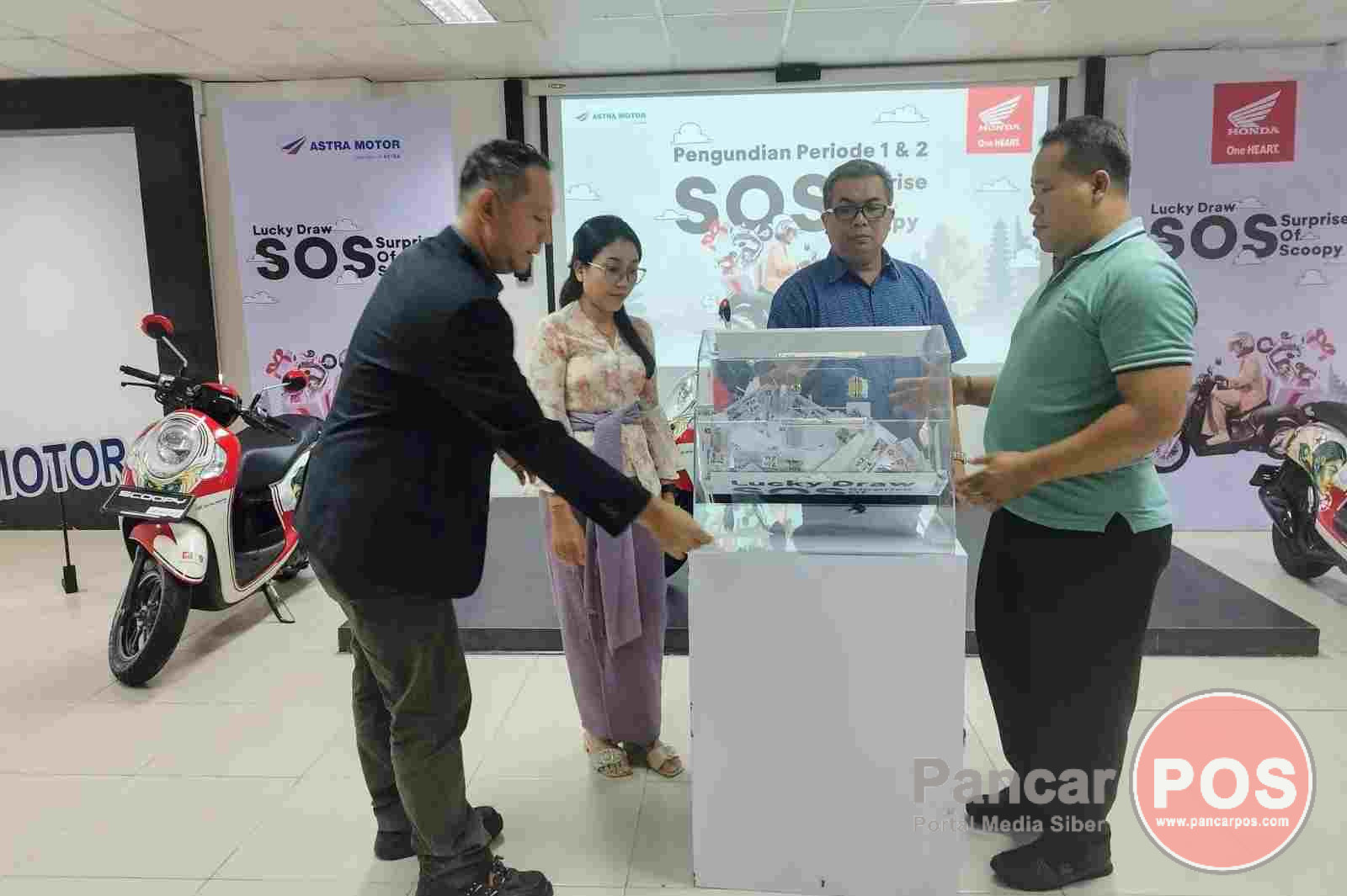 Denpasar, PancarPOS | Setelah melewati periode program yang bertajuk “Lucky Draw, Surprise of Scoopy” (SOS) dibagi menjadi 3 periode yakni Periode 1 (Pembelian 17 Sept – 31 Oktober 2024) lalu Periode 2 (Pembelian 1 – 30 November 2024), dan periode 3 (Pembelian 1 – 31 Desember 20240, tibalah saatnya Astra Motor Bali melakukan pengundian. Programnya adalah setiap pembelian unit Honda Scoopy maka konsumen akan mendapatkan 1 voucer undian yang akan diundi setiap bulan dengan mengundi hadiah 3 unit Honda Scoopy modif x Bali United. Lebih menarik lagi undian final (Januari 2025) akan ditambahkan dengan pengundian hadiah utama 2 unit motor EM1;e.