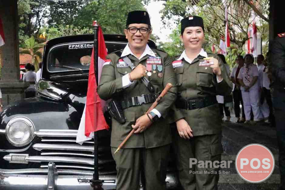 Tabanan, PancarPOS | Momen Peringatan HUT Kemerdekaan RI ke- 78 di Kabupaten Tabanan tahun ini terbilang unik dan menarik. Mengangkat konsep perjuangan, para peserta mengenakan pakaian dan atribut para pahlawan pejuang kemerdekaan. Bupati Tabanan Dr. I Komang Gede Sanjaya, SE.,MM, yang bertindak sebagai Inspektur Upacara dalam kesempatan tersebut mengenakan pakaian Bapak Proklamator Kemerdekaan RI sekaligus Presiden Indonesia yang pertama Ir. Soekarno, didampingi Ketua Tim Penggerak PKK Kabupaten Tabanan Ny. Rai Wahyuni Sanjaya, Kamis, (17/8/2023).