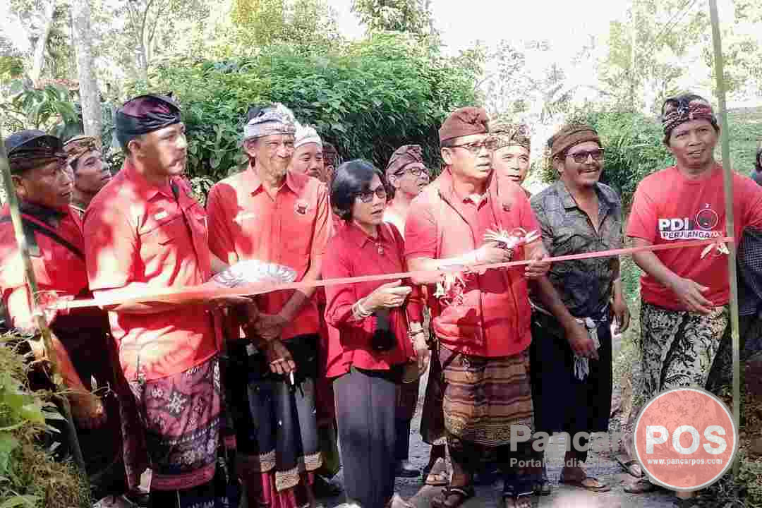Tabanan, PancarPOS | Pasukan GAMA (Ganjar-Mahfud) kembali menggempur Kecamatan Pupuan, Tabanan, pada Rabu, 17 Januari 2024 untuk menemui masyarakat di akar rumput. Tim pemenangan pasangan calon nomor urut 3, Ganjar Pranowo dan Mahfud M-D (Paslon Ganjar-Mahfud) ini, Turba atau turun ke bawah melakukan safari dan aktivitas politik, sekaligus meresmikan Jalan Usaha Tani (JUT) Subak Abian di Desa Batungsel, oleh Anggota Komisi IV DPR RI dari Fraksi PDI Perjuangan, Drs. I Made Urip, M.Si., didampingi Caleg DPRD Provinsi Bali nomor urut 3 dari PDI Perjuangan di Dapil Tabanan, Ni Made Usmantari alis M-U. Bantuan program aspirasi JUT yang diperjuangkan M-U tersebut, sudah selesai dibangun sepanjang 700 meter, karena sangat dibutuhkan oleh para petani dan krama subak untuk memudahkan pengangkutan hasil panen produksi pertanian.