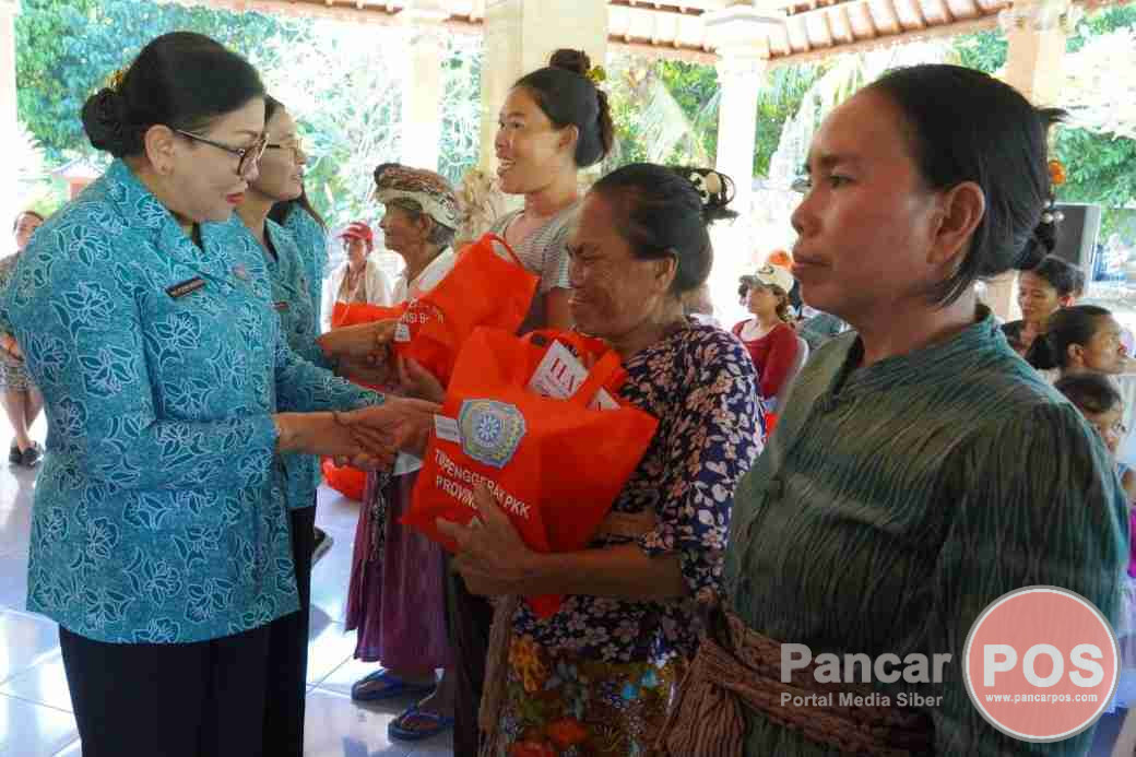 Klungkung, PancarPOS | Tim Penggerak Pemberdayaan dan Kesejahteraan Keluarga (TP PKK) Provinsi Bali melaksanakan aksi sosial “Bergerak dan Berbagi” di tiga desa di Kecamatan Nusa Penida, Kabupaten Klungkung, pada Jumat (17/4/2026). Adapun tiga desa yang menjadi sasaran kegiatan tersebut yakni Desa Bunga Mekar, Desa Batukandik, dan Desa Suana.
