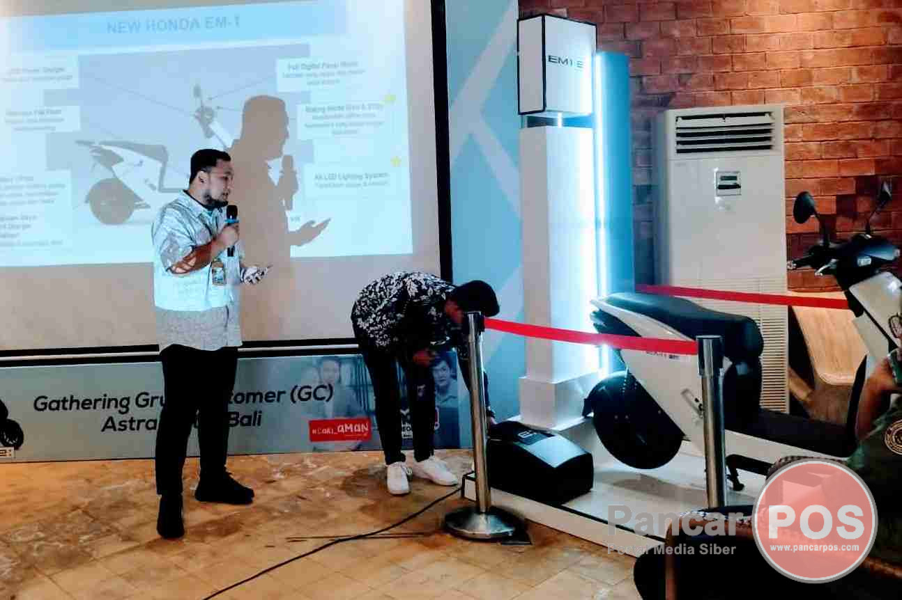Denpasar, PancarPOS | Setelah resmi diluncurkan PT Astra Honda Motor (AHM) bulan Agustus lalu, kini sepeda motor listrik Honda EM1 e: hadir di pulau dewata. Kehadiran motor listrik Honda EM1 e: ini sekaligus diperkenalkan pada acara gathering grup customer 20 Oktober 2023 di Baleudang Mang engking Denpasar. Sebanyak 32 instansi dari beberapa elemen yang hadir secara langsung menyaksikan sepeda motor listrik Honda EM1 e: ini.