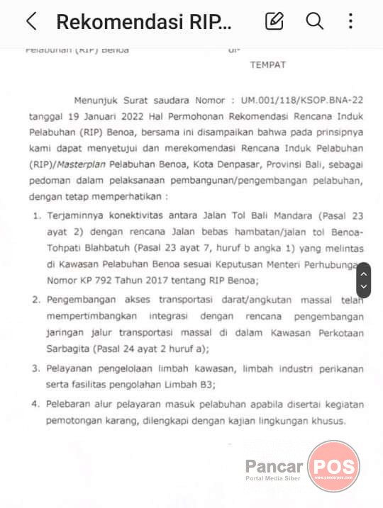 Badung, PancarPOS | Keluhan warga Tanjung Benoa, Kuta Selatan Badung yang telah melayangkan surat aduan yang memprotes keras terhadap mega proyek pengurugan laut atau reklamasi di sekitar Pelabuhan Benoa masih menunggu respon Sub Regional Pelindo Bali dan Nusra. Perlu diketahui, proyek tersebut bukan hanya mendapat penolakan dari para pegiat lingkungan, namun juga membuat prihatin warga sekitar. Salah satunya Kelompok Nelayan dari Lingkungan Br. Panca Bhineka, Kelurahan Tanjung Benoa, Kecamatan Kuta Selatan, Kabupaten Badung. Kabarnya saat ini, meskipun sudah mengantongi Surat Rekomendasi, namun Rencana Induk Pelabuhan (RIP) untuk pengembangan Pelabuhan Benoa sebagai Bali Maritime Tourism Hub (BMTH) masih teganjal oleh Kajian Lingkungan Khusus. Usut punya usut, rekomendasi tersebut untuk pelebaran alur pelayaran masuk Pelabuhan Benoa. Apabila disertai kegiatan pemotongan karang maka harus dilengkapi dengan Kajian Lingkungan Khusus.