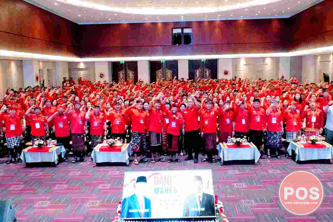 “Seluruh Petugas Partai di Bali yang menjadi Pengurus, DPR RI, DPRD Provinsi dan Kabupaten/Kota, serta Kepala Daerah/Wakil Kepala Daerah menyatakan itikad dan tekad siap bekerja keras bersama – sama masyarakat untuk memenangkan GANJARMAHFUD menjadi Presiden dan Wakil Presiden 2024 demi eksistensi, kemajuan, dan kebaikan Negara Kesatuan Republik Indonesia serta masa depan anak cucuk Kita,” pungkasnya. tim/ama/yar
