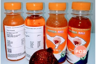 Produksi minuman probiotik menggunakan buah salak Bali varietas nangka dan layak dikonsumsi yang ditambahkan stater kefir sebagai probiotik. Pengembangan produk minuman probiotik sari buah salak dengan stater kefir sudah mencapai tahap penelitian. Penelitian yang telah dilakukan untuk pengembangan produk ini yaitu karakteristik fisikokimia, mikrobiologi, organoleptik dan imunostimulator serum hewan coba berdasarkan perbedaan  jenis gula yaitu gula pasir dan gula merah.