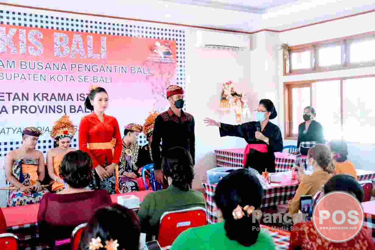 Jembrana, PancarPOS | Pasikian Paiketan Krama Istri (PAKIS) MDA Provinsi Bali menggelar Pelatihan Ragam Busana Pengantin Bali bertempat di Gedung Majelis Desa Adat (MDA) Kabupaten Jembrana, Jumat (22/4/2022).
