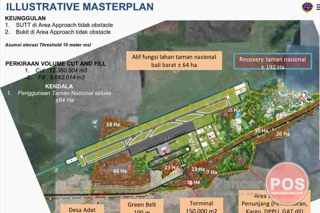 Master plan/ gambar rencana bandara di Desa Sumberklampok yang menyisir hutan konservasi Taman Nasional Bali Barat (TNBB). (foto: ist)