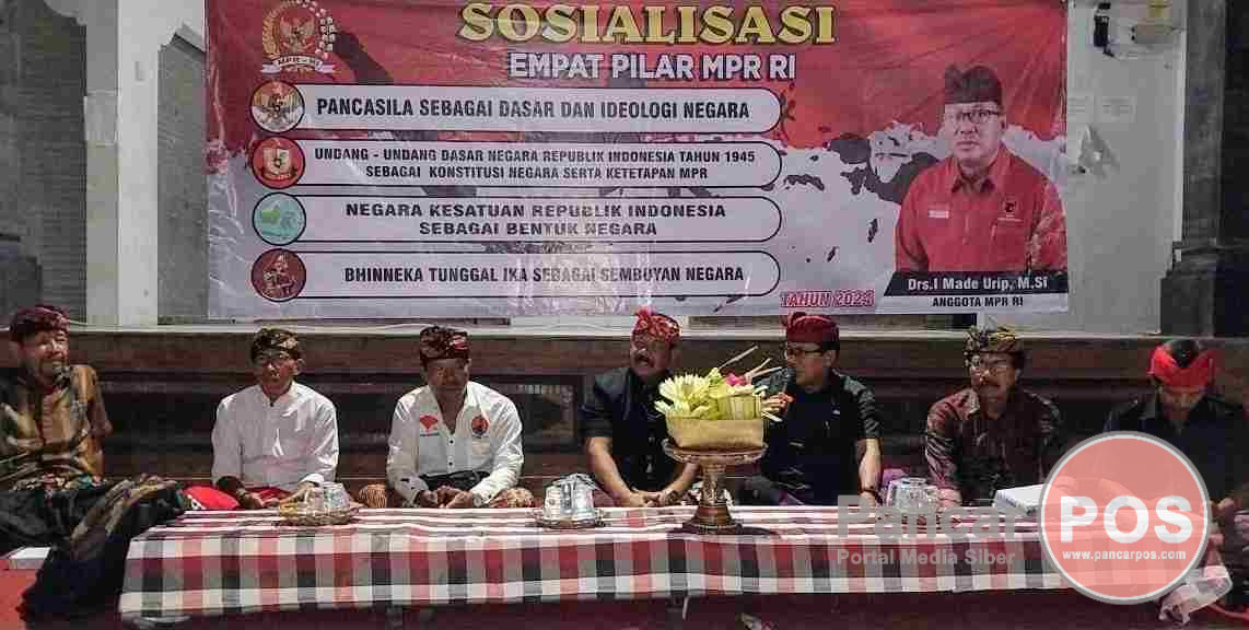 Tabanan, PancarPOS | Sosialisasi 4 Pilar Kebangsaan kembali digaungkan oleh Anggota DPR RI dari Fraksi PDI Perjuangan, Drs. I Made Urip sebagai salah satu Anggota MPR RI. Ketua DPP PDI Perjuangan membidangi Pertanian, Kehutanan dan Lingkungan Hidup itu, roadshow memberi pemahaman nilai-nilai kebangsaan yang diawali di Desa Adat Sembung Gede, Kecamatan Kerambitan, Tabanan, pada Rabu, 24 Januari 2024. Kehadiran Made Urip yang diberi julukan oleh petani dan krama subak sebagai Wakil Rakyat Sejuta Traktor yang akran disapa M-U ini, didampingi Anggota DPRD Tabanan dari Fraksi PDI Perjuangan, I Ketut Arsana Yasa alias Ketut Sadham. Selanjutnya, Made Urip memberikan pemahaman 4 Pilar Kebangsaan di Desa Penarukan, Kecamatan Kerambitan, Tabanan, pada Sabtu, 27 Januari 2024 yang dihadiri kader-kader PDI Perjuangan seluruh Kecamatan Kerambitan.