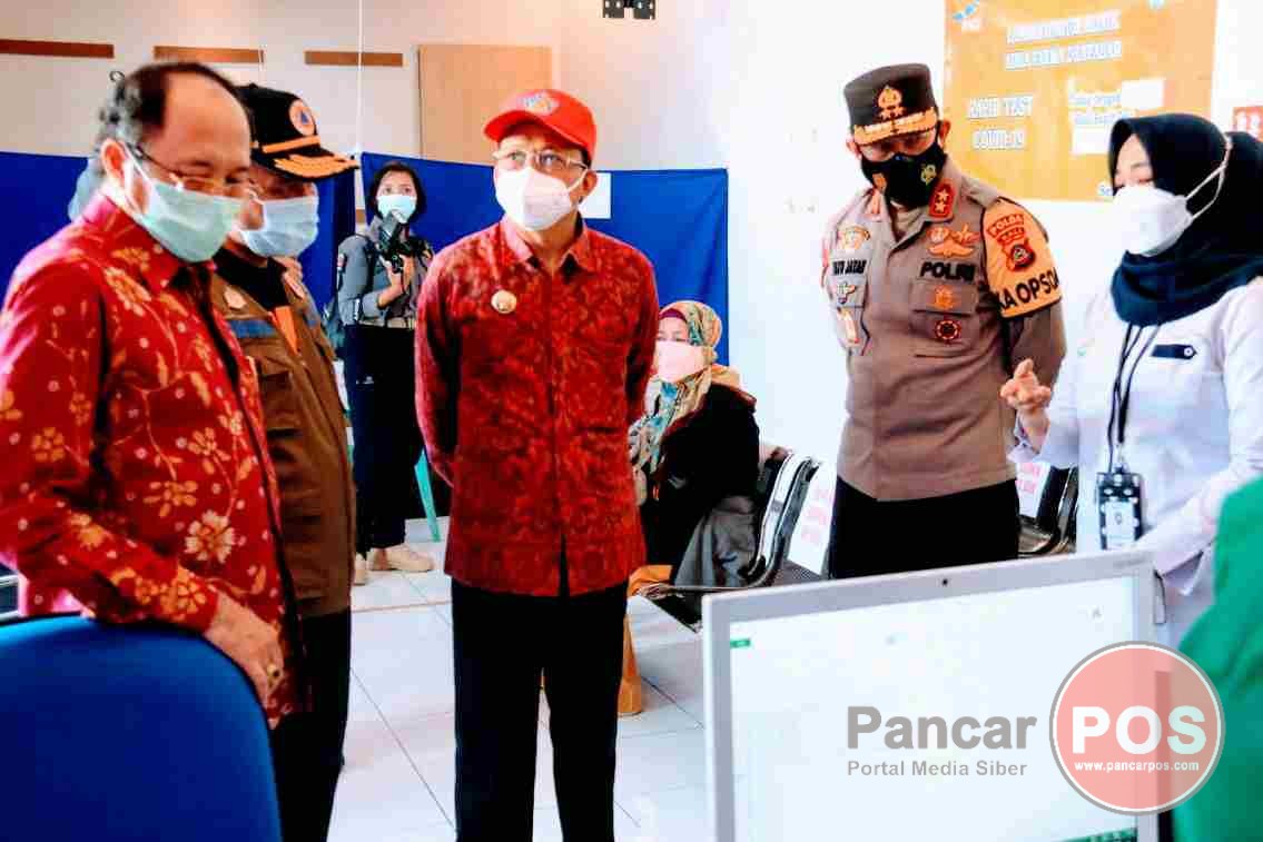 Jembrana, PancarPOS | Jelang Libur Hari Raya Natal dan Menyambut Tahun Baru 2021, Gubernur Bali Wayan Koster secara langsung melakukan kunjungan kerja sekaligus menyapa kedatangan para penumpang ke Pelabuhan Gilimanuk, Kecamatan Melaya, Kabupaten Jembrana, Rabu (23/12/2020). Pada kesempatan itu, Gubernur juga mengecek dan ingin mengetahui langsung jalannya kegiatan Rapid Test di pelabuhan ujung barat Pulau Bali tersebut.
