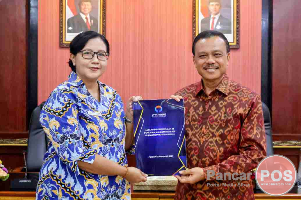 Denpasar, PancarPOS | Sekretaris Daerah Provinsi Bali, Dewa Made Indra, menerima hasil opini Ombudsman RI terkait Penilaian Maladministrasi Pelayanan Publik Tahun 2025 yang diserahkan langsung Kepala Perwakilan Ombudsman RI Provinsi Bali, Ni Nyoman Sri Widianti, di Gedung Wiswa Sabha Pratama, Rabu (25/2/2026).