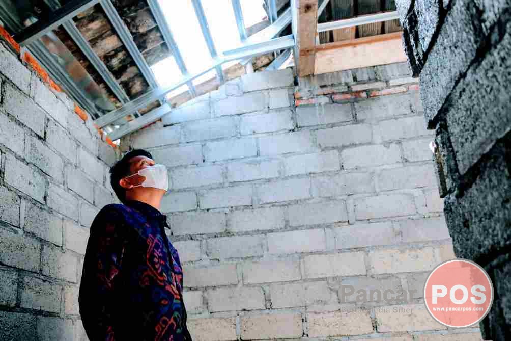 Klungkung, PancarPOS | Bupati Klungkung I Nyoman Suwirta didampingi Kepala Dinas Sosial Pemberdayaan Perempuan dan Perlindungan Anak Kabupaten Klungkung, I Gusti Agung Gede Putra Mahajaya dan Perbekel Desa Tihingan I Wayan Sugiarta menyerahkan bantuan rehab rumah warga kepada Putu Pande Arianti, di Banjar Tubuh, Dusun Penasan, Desa Tihingan pada Minggu (25/7/2021).