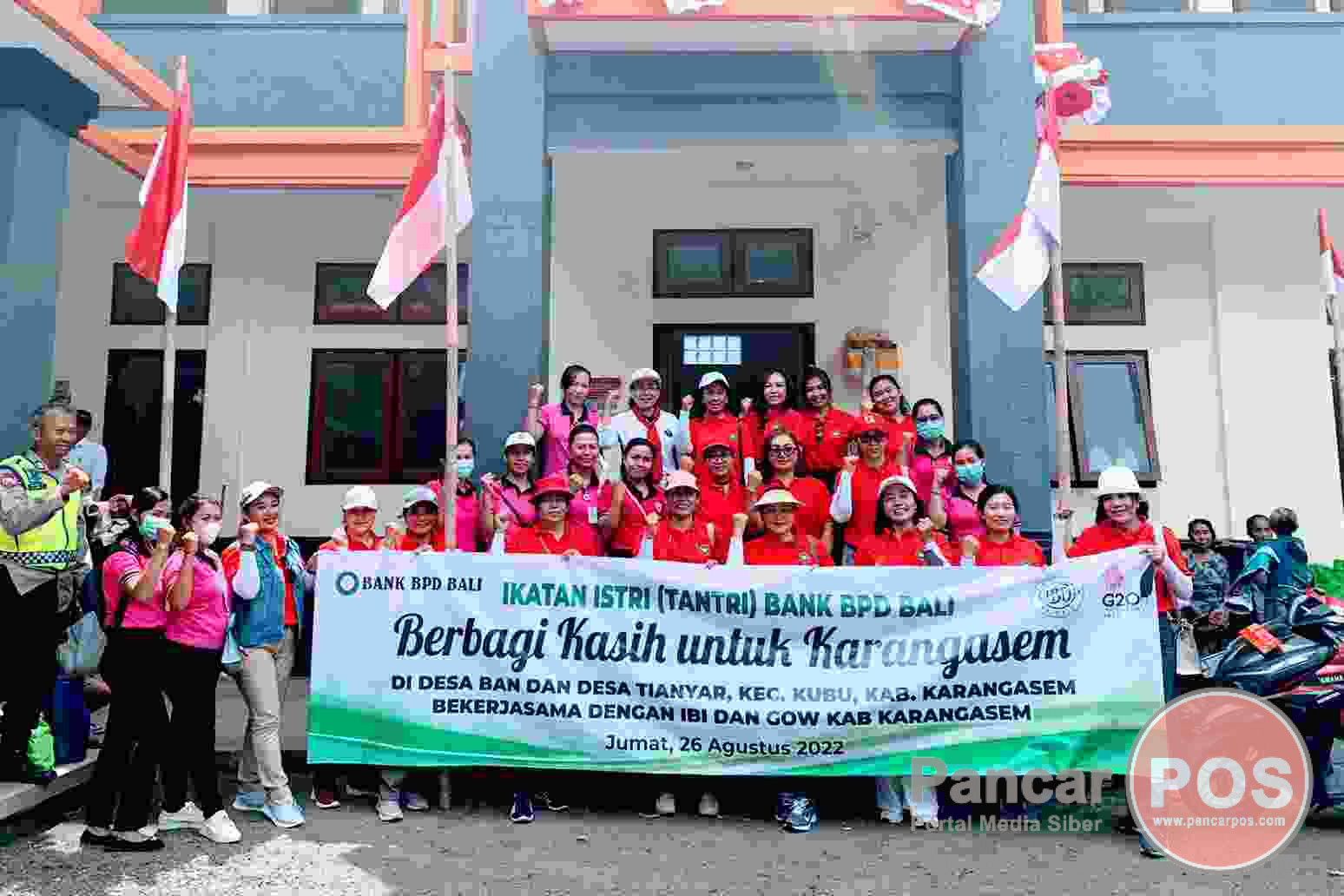 Karangasem, PancarPOS | Berbagai wujud kepedulian sosial terus digerakan oleh Ikatan Istri (Tantri) Bank BPD Bali. Kali ini untuk mendukung program pemerintah sebagai upaya untuk mencegah, sekaligus mempercepat penurunan angka stunting, atau kekurangan gizi sejak bayi, maupun dalam kandungan di Karangasem, Tantri Bank BPD Bali menggandeng Ikatan Bidan Indonesia (IBI) Karangasem bersama GOW (Gabungan Organisasi Wanita) Karangasem untuk menggelar Bakti Sosial (Baksos), berupa bantuan paket Sembako di dua desa yakni Desa Ban dan Desa Tianyar, Kecamatan Kubu, Karangasem, pada Jumat (26/8/2022).